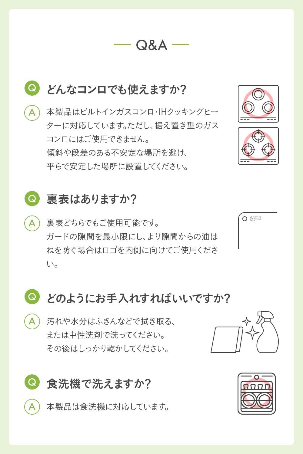 【こんなかたにおすすめです】 「揚げ物の後の油汚れをなんとかしたい」 「大きくて洗いにくいレンジガードに悩んでいる」 「スキマから飛ぶ油はねが気になる…」「狭いキッチンでも使いたい」 そんなお悩みをお持ちの方にぴったり。調理後の片付けがラクになり、料理の時間がもっと快適になります。