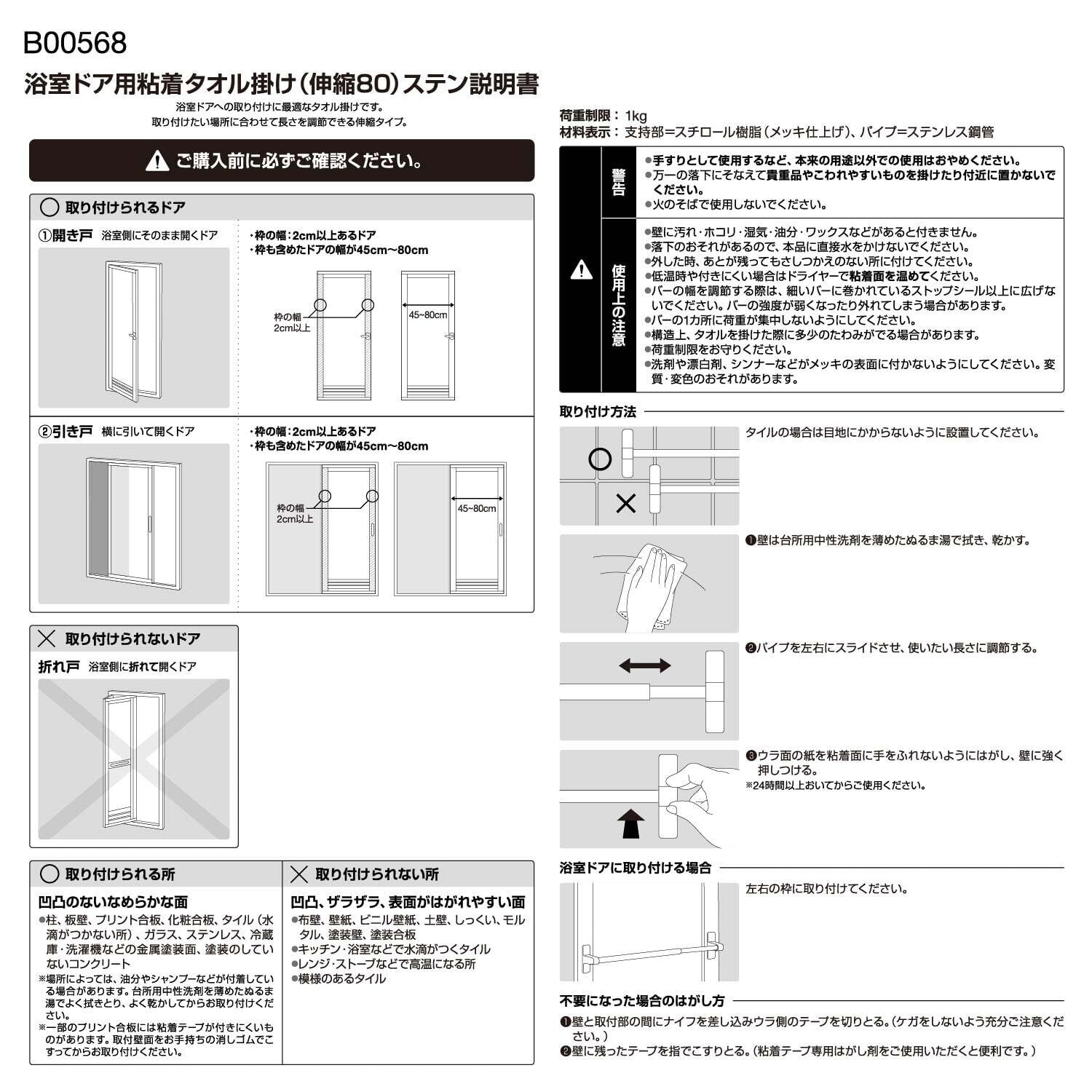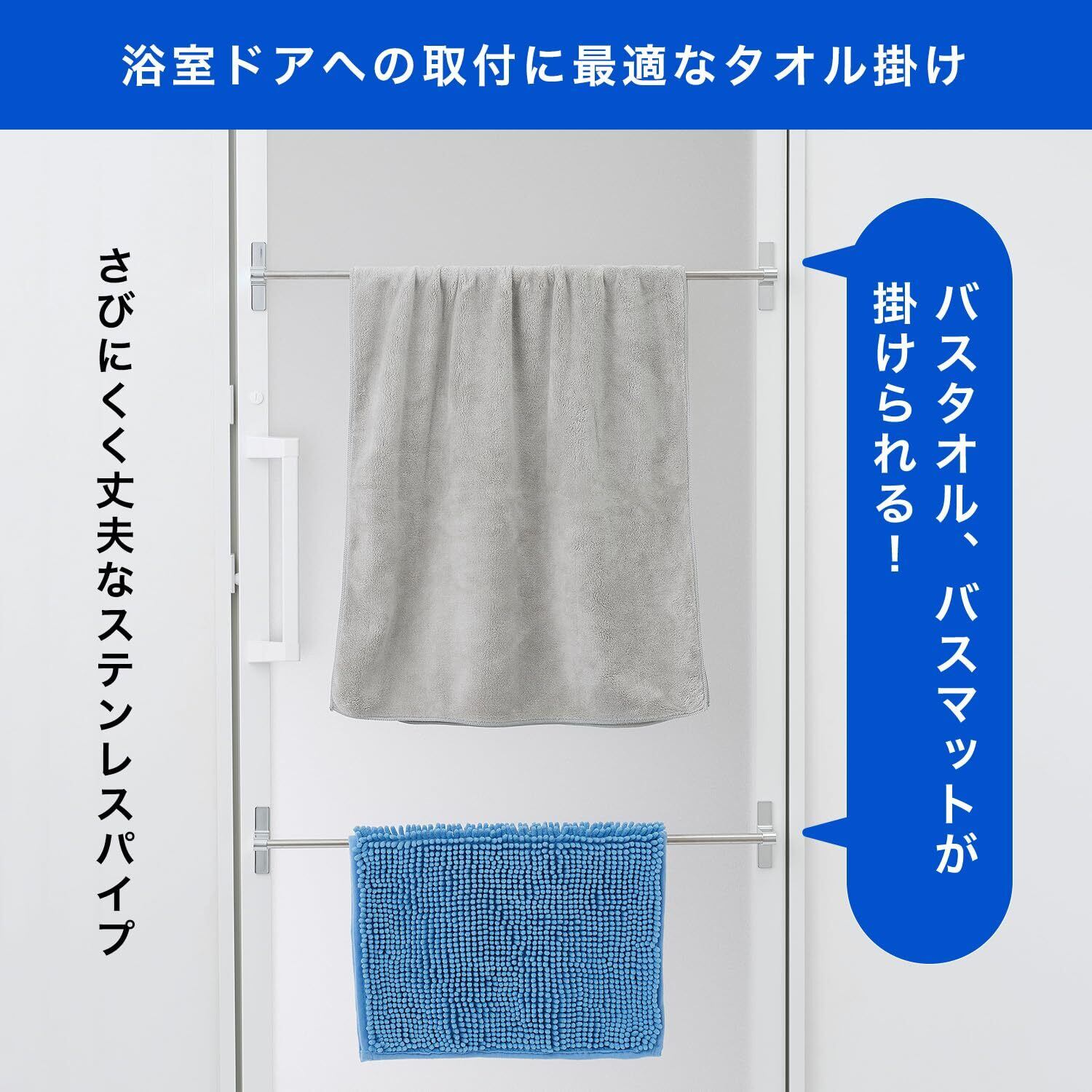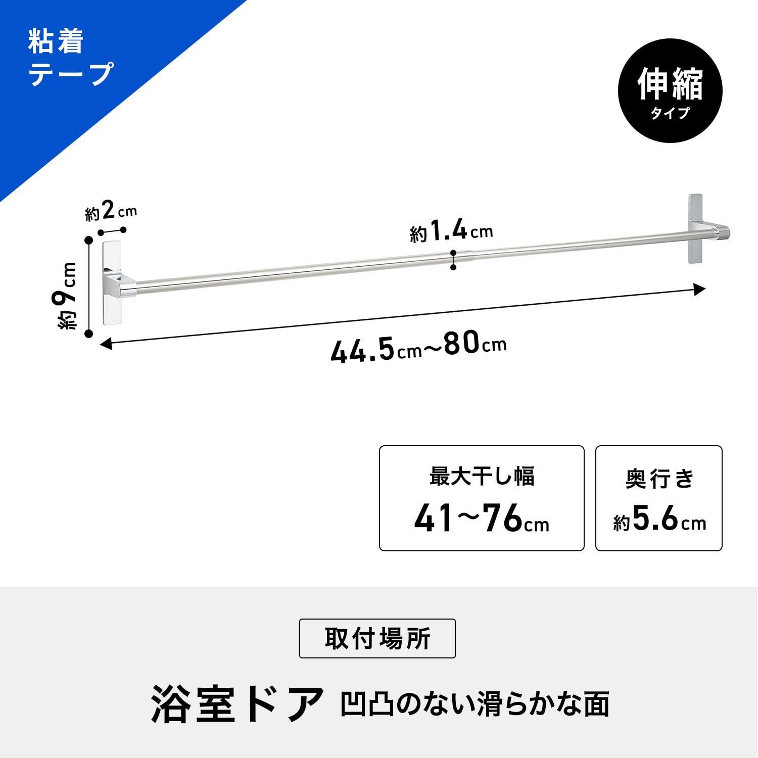 浴室ドア用 粘着 伸縮 タオル掛け ステンレス 伸縮幅 44.5~80cm(干幅41~76cm) 耐荷重1kg 浴室ドアにピッタリ形状