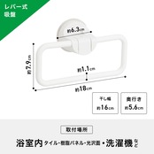 レバー式 強力 吸盤 タオルリング ホワイト 全長 18cm(干幅16cm) 耐荷重3kg