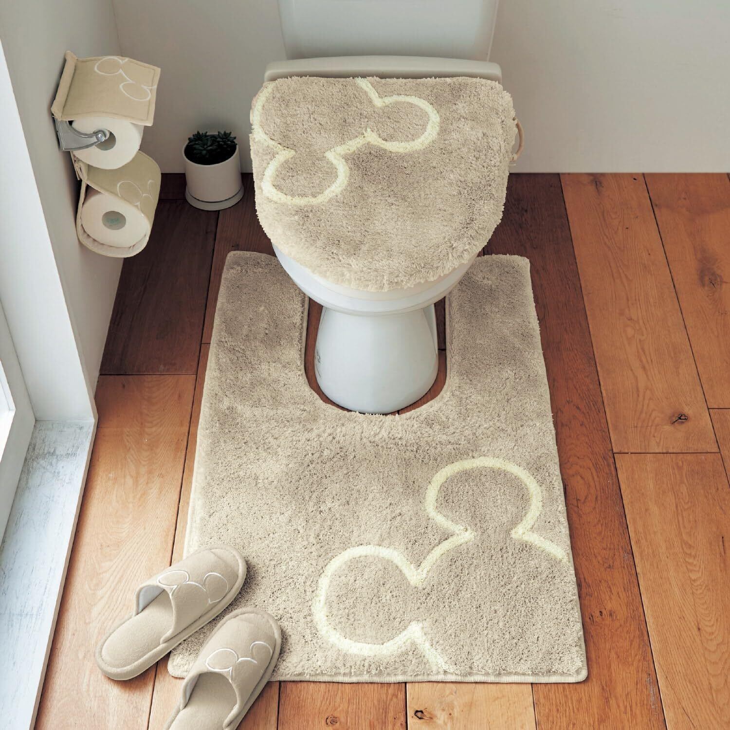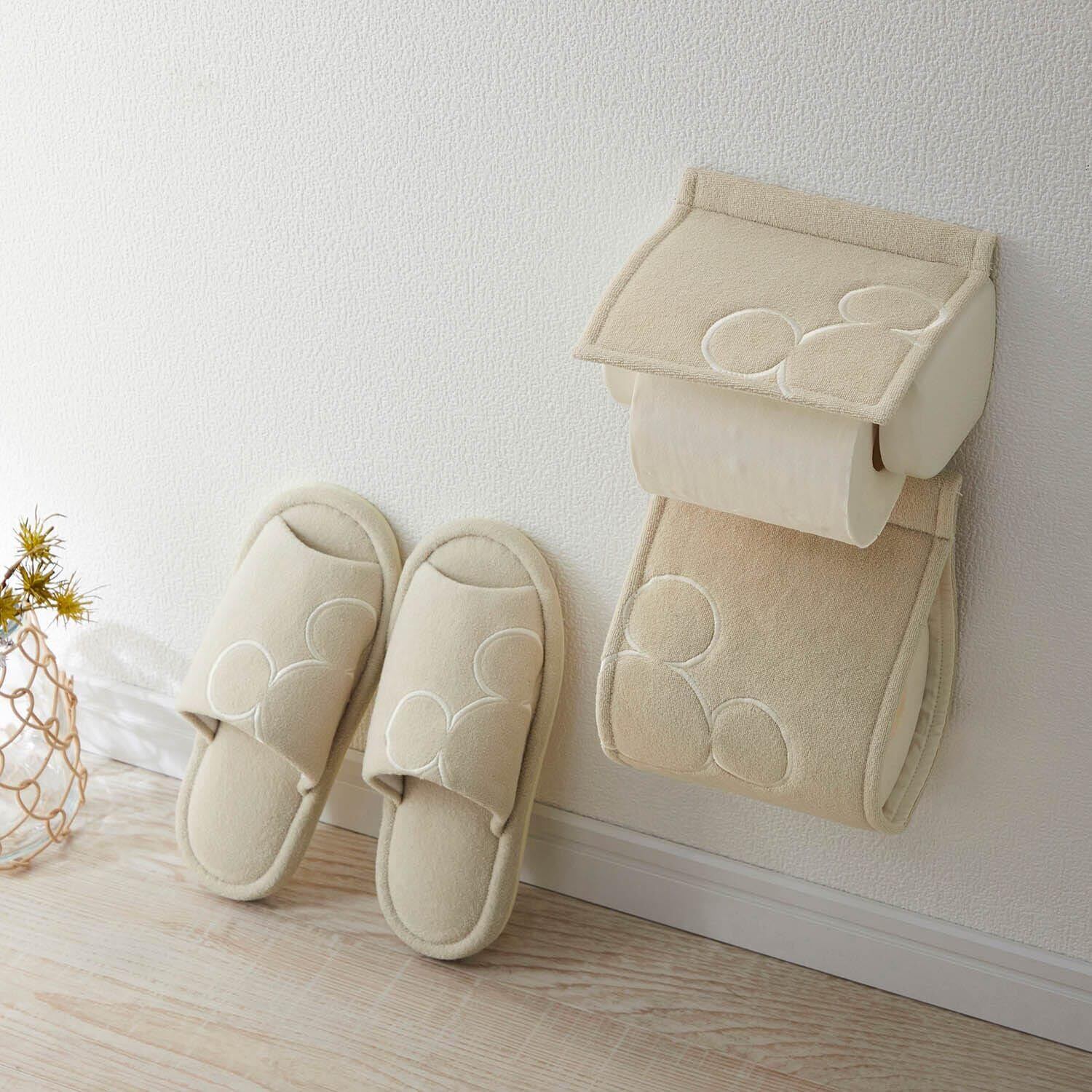 【2025最新】[ベルメゾン] ディズニー トイレットペーパーホルダーカバー スリッパ 2点 セット シンプル パイル トイレファブリック ミッキーモチーフ ベージュ