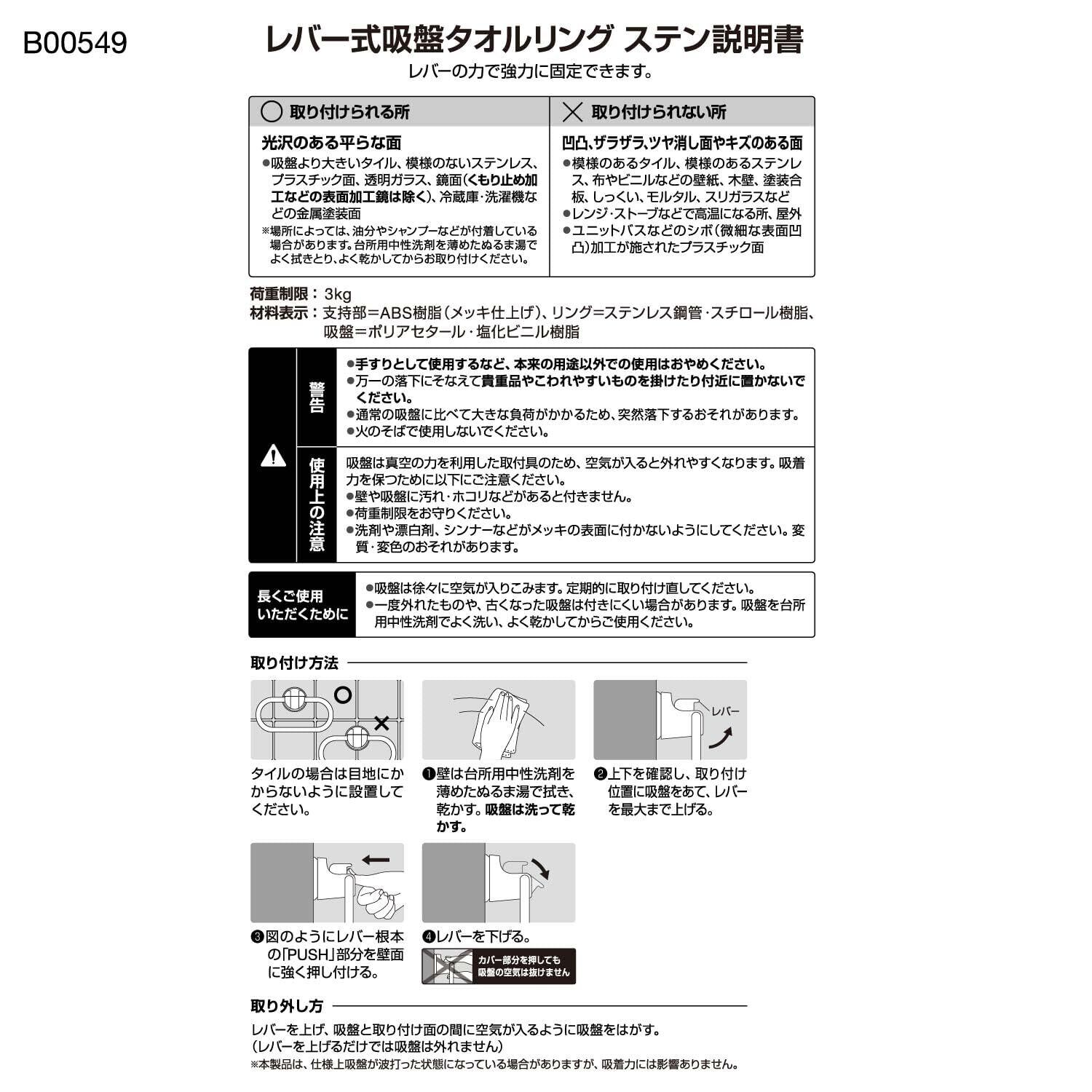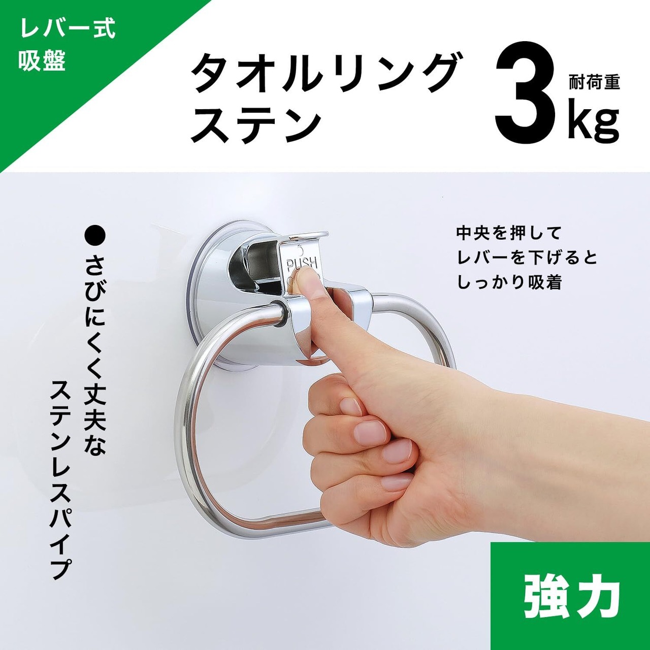 レバー式 強力 吸盤 タオルリング ステンレス 全長 18cm(干幅16cm) 耐荷重3kg