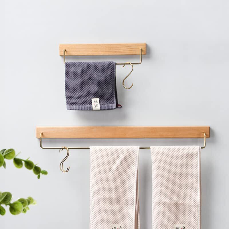 【2025最新】タオルハンガー フェイスタオル掛け 真鍮 天然木製 洗面所 壁 トイレ 木 シンプル ヴィンテージ風 耐衝撃性 錆びにくい 北欧風 おしゃれ 一人暮らし 引越し祝い タオルホルダー 自宅用 レストラン (30cm, ブナ)