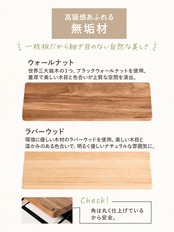 継ぎ目のない無垢の一枚板を使用した天板を使用。天然木のぬくもりが感じられます。お気に入りの植物やディフューザーを飾って、自分だけのほっとする癒やしの空間へ。次の2種類からお選びいただけます。<ブラックウォールナット>重厚で美しい木目と色合い <ラバーウッド>温かみのある明るいナチュラルな色合い