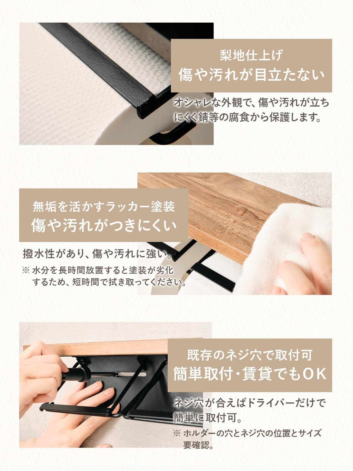 既存のネジ穴を利用して取り付け可能。賃貸でもお手軽にお手洗いのDIYが出来ます。