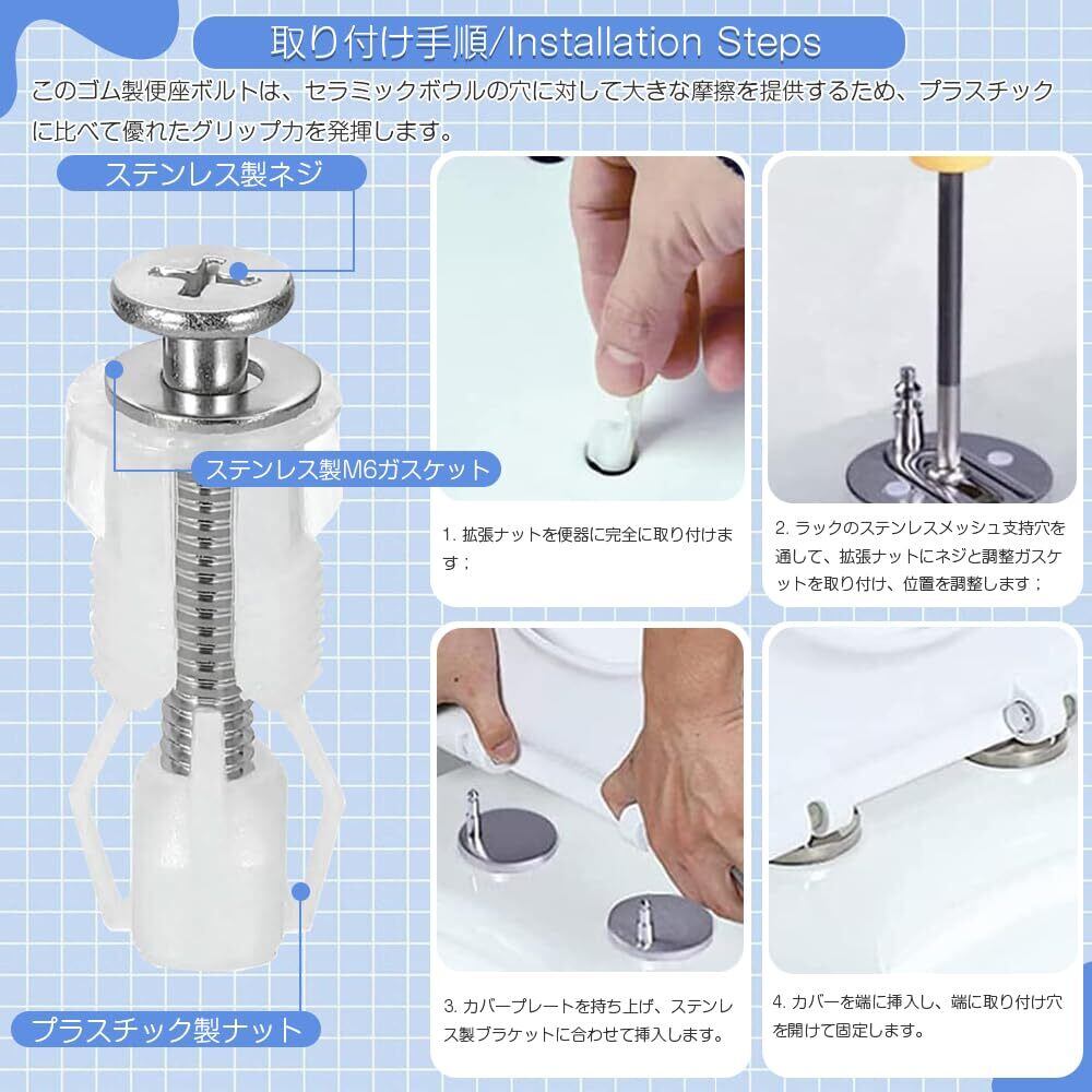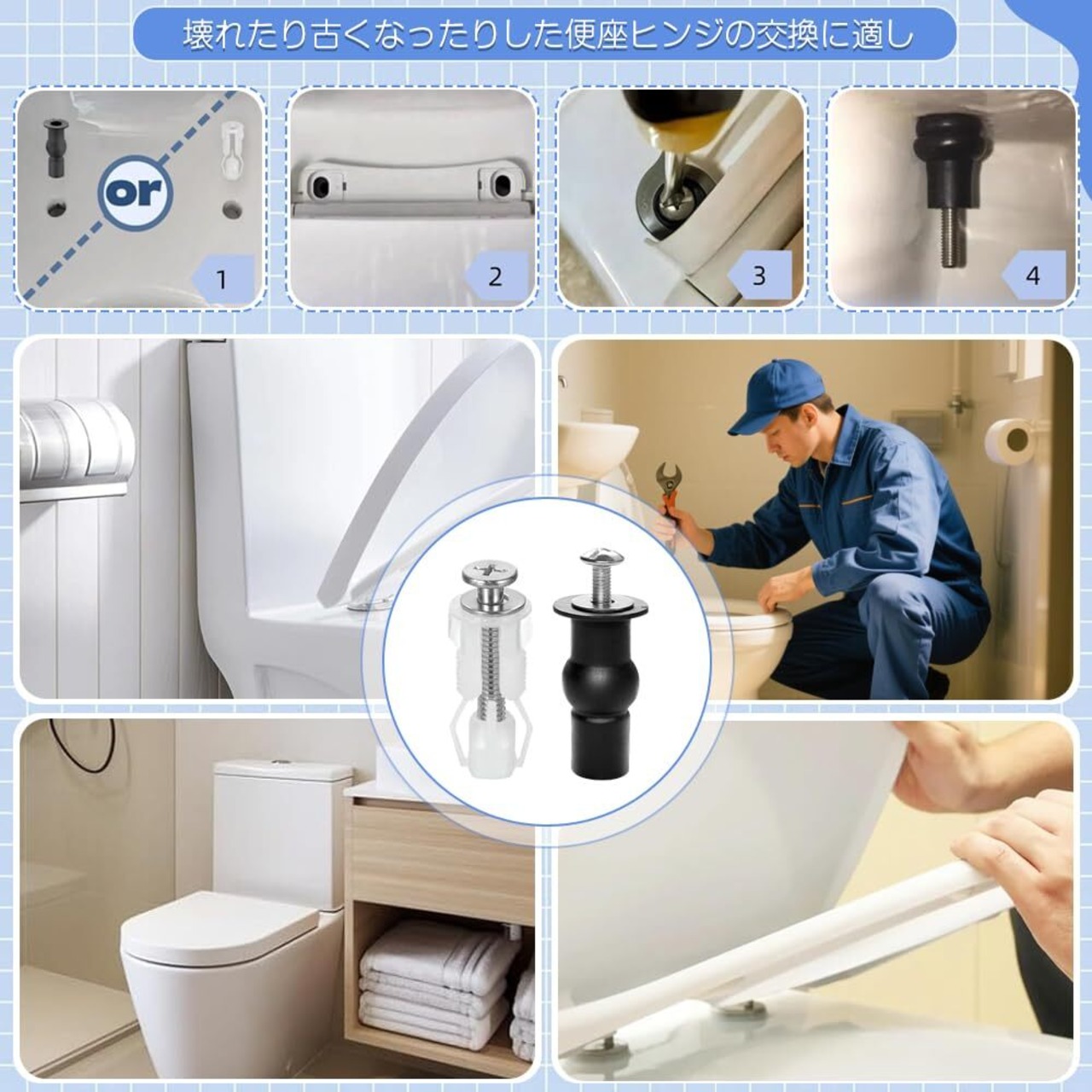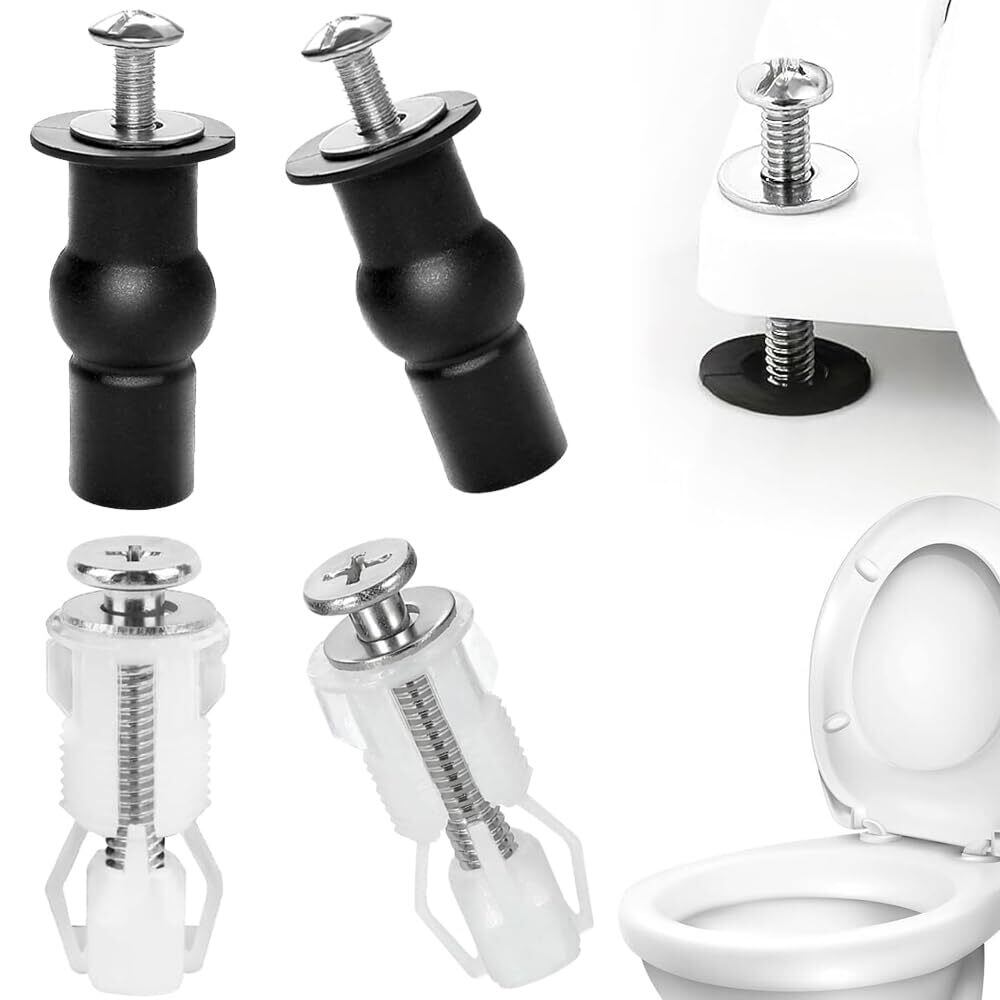 セット内容:2組/4個便座ネジ、ゴム製とナイロン製の便座ネジをお届けします。(ゴム製拡張ネジ2pcs+ナイロン製拡張ネジ(皿頭ネジ付き)2pcs);丸いヒンジプレートは、便座をしっかりと固定し、便座がずれる問題を解決します。