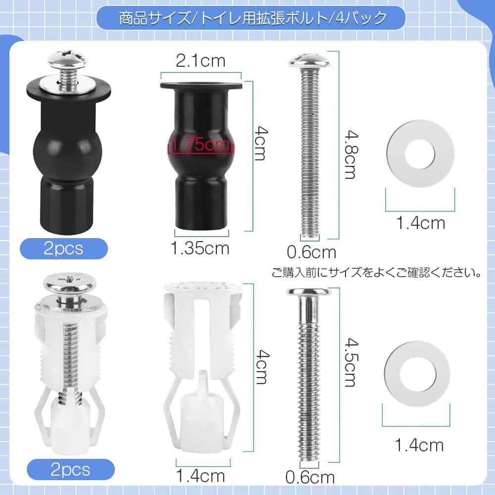 【新着商品】便座ヒンジネジ M6 ヒンジボルトネジ 4個セット 上部取り付け便座ヒンジ用 便座取付具 ヒンジ固定具 ネジ交換キット 補修用ボルトセット 交換部品キット (ゴム製拡張ネジ2pcs+ナイロン製拡張ネジ(皿頭ネジ付き)2pcs)