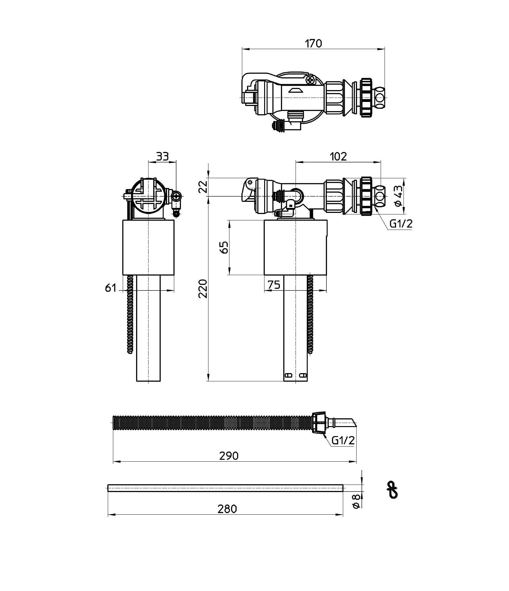 ●下給水用の立形ロータンクボールタップ