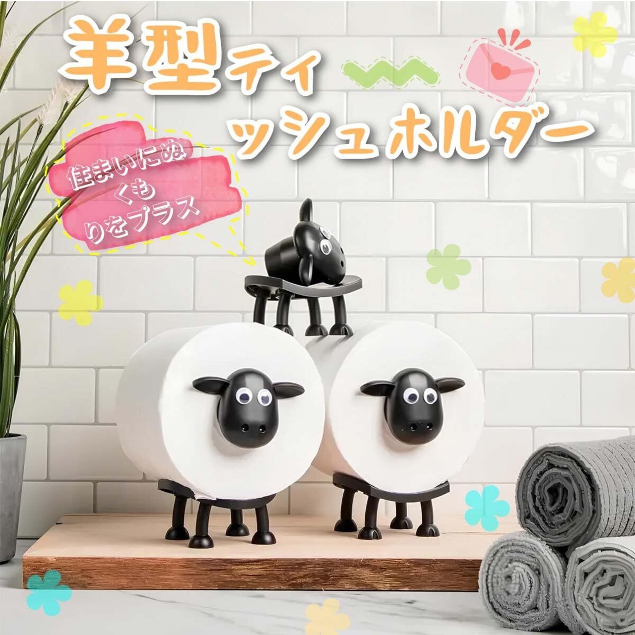 3個セット 羊のトイレットペーパーホルダー【紙芯直径38mm JIS規格】 トイレットペーパー トイレットペーパーホルダー 愛らしい羊モチーフ