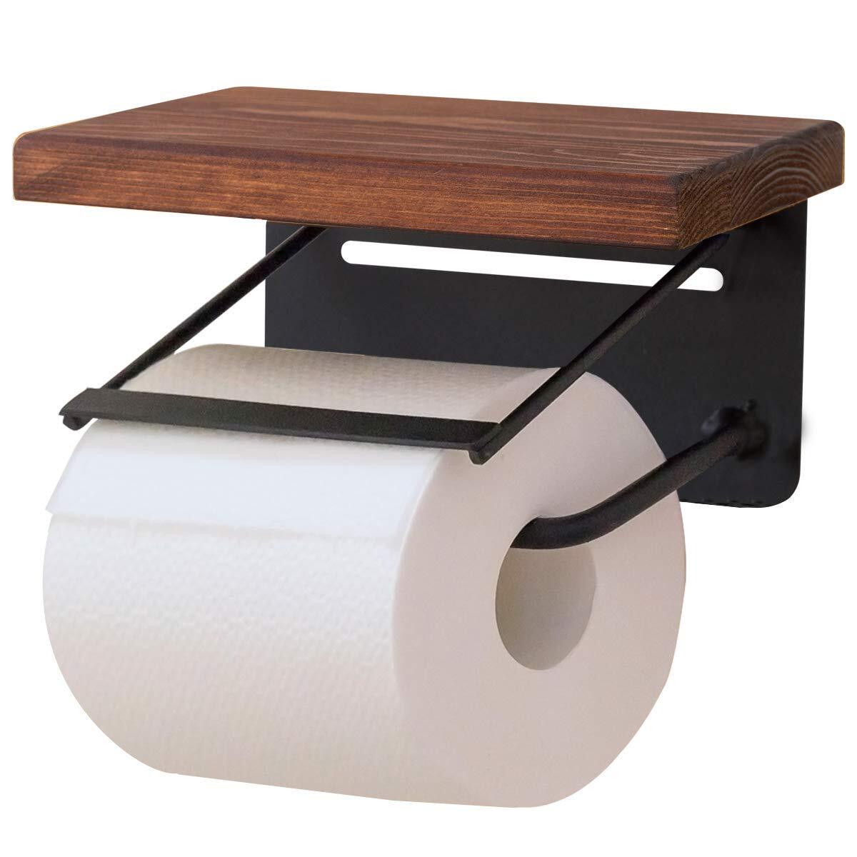 ottostyle.jp トイレットペーパーホルダー 【シングル/ブラウン】 パイン材/オイル仕上げ 天然木 棚 小物置き 簡単設置