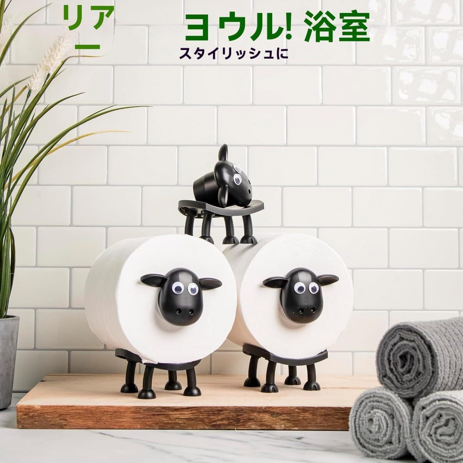 【組み立て簡単】トイレットペーパー置きこのトイレットペーパーラックは置き型なので、取り付けが簡単で、穴あけの必要がありません。羊の頭を紙ロールに入れて置くだけです。ご注意事項:※芯の無いエコペーパーなどはご使用いただけません。