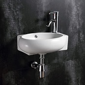 【高級排水セット付き】 おしゃれ 手洗い器 壁掛け 手洗器 小型洗面ボウル 洗面ボール ミニ 洗面台 手洗いボウル 壁付け型 陶器製 トイレ 手洗い台 (右側)