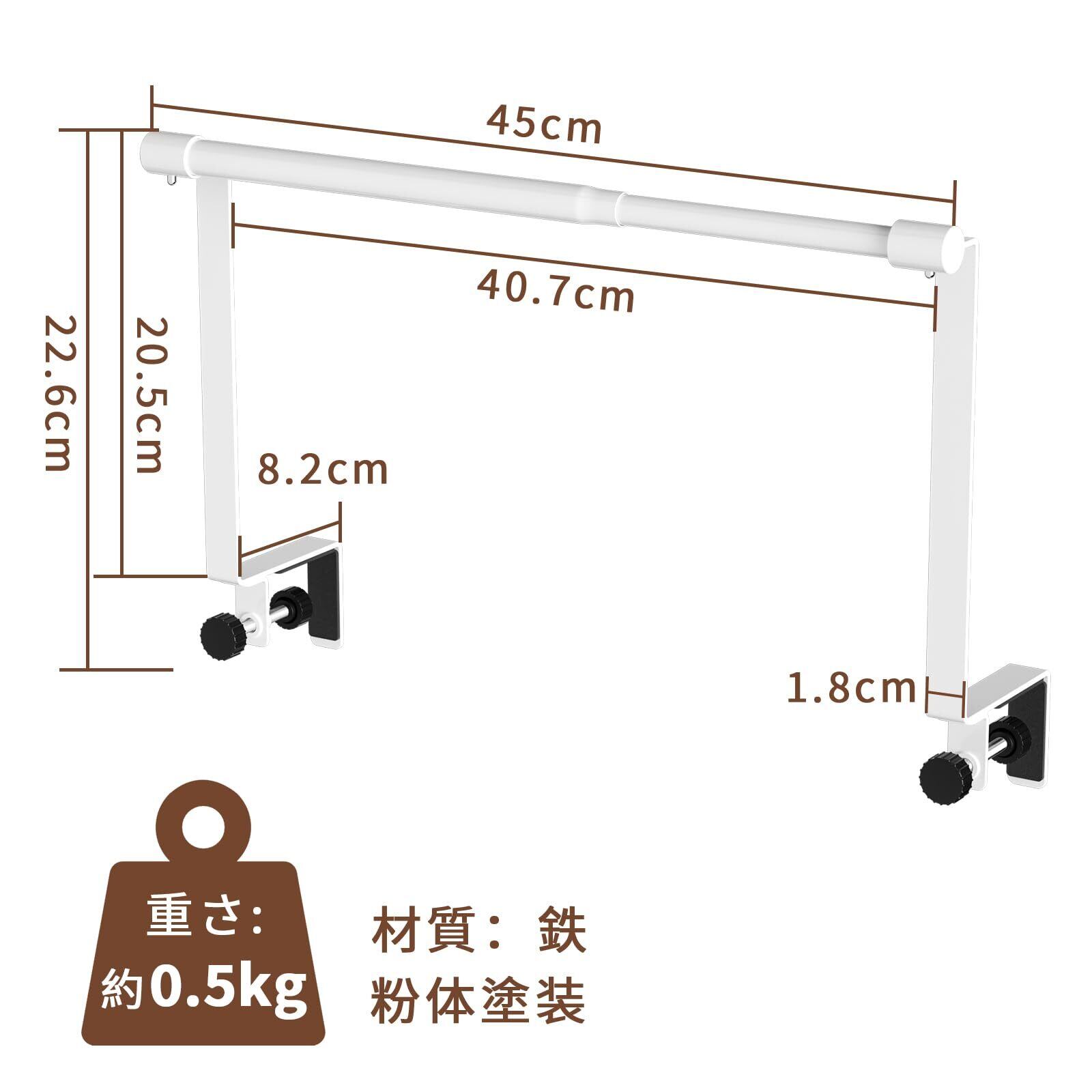 【商品仕様】素材:ステンレス+鉄、重量:0.6kg。ポールは伸縮設計で、長さは27cmから45cmまで調節可能で、多くのお客様のニーズにお応えします。