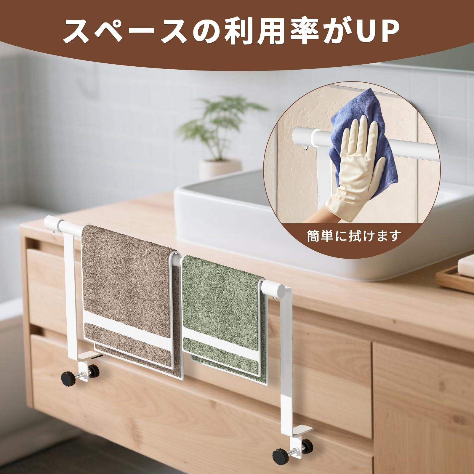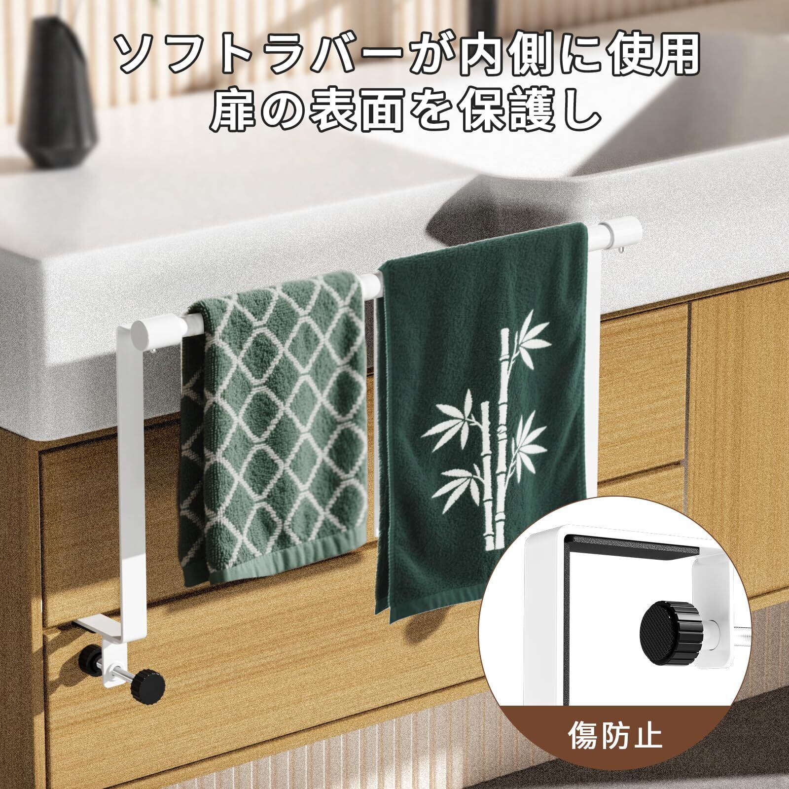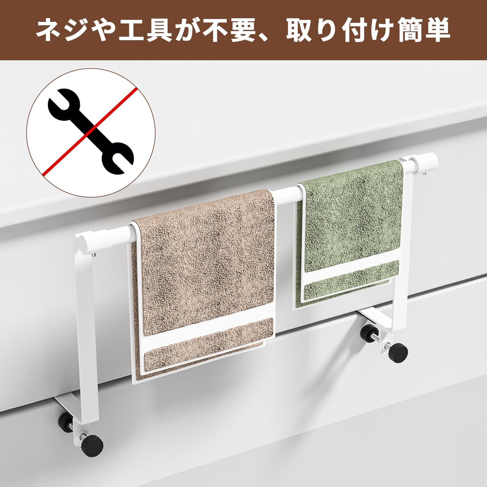 【取り付けやすい】特別なエ事は不要で、すぐに使い始めることができ、タオルかけをキャビネットドアまたは引き出しに引っ掛けるだけです。吸盤式とは違い、落下の心配がありません。