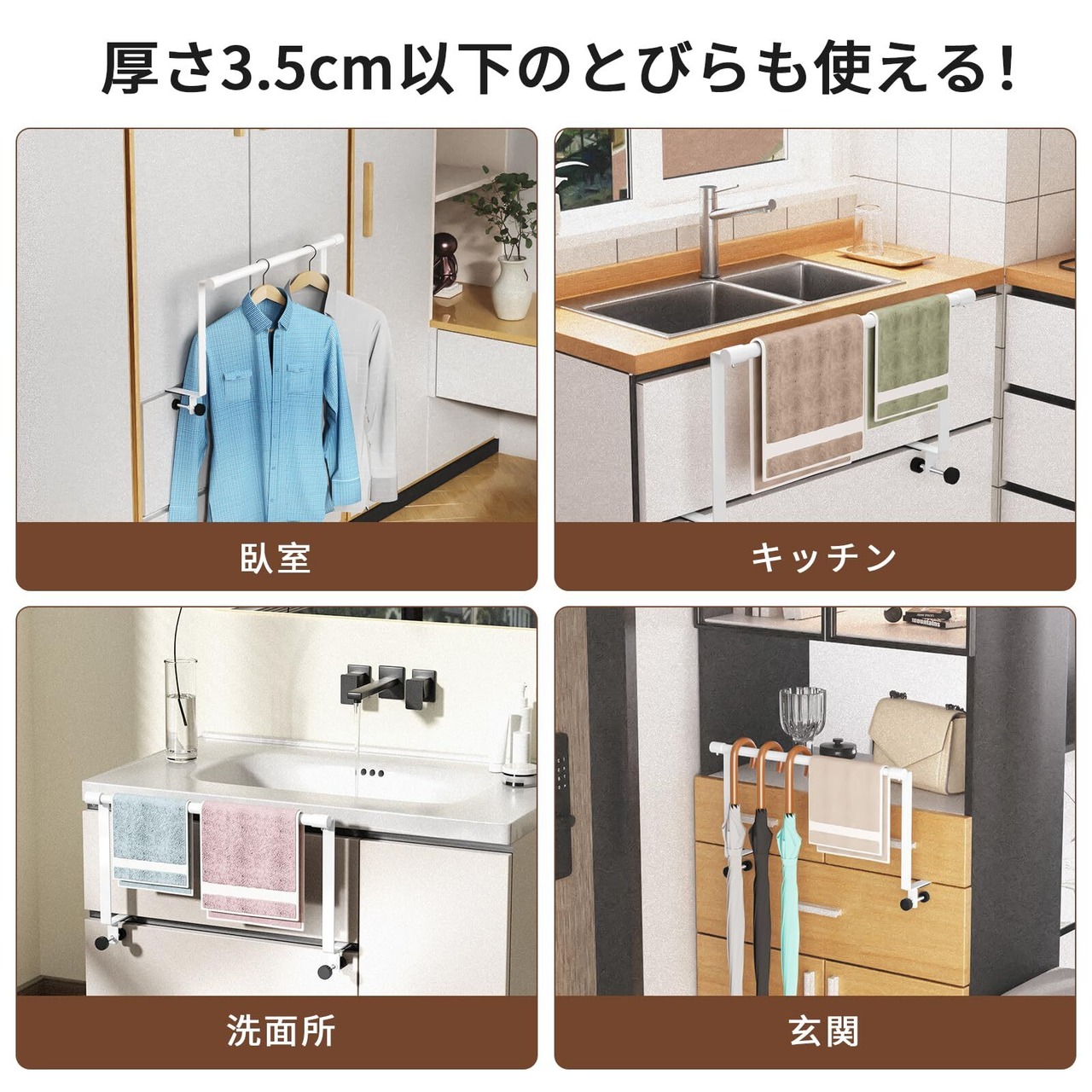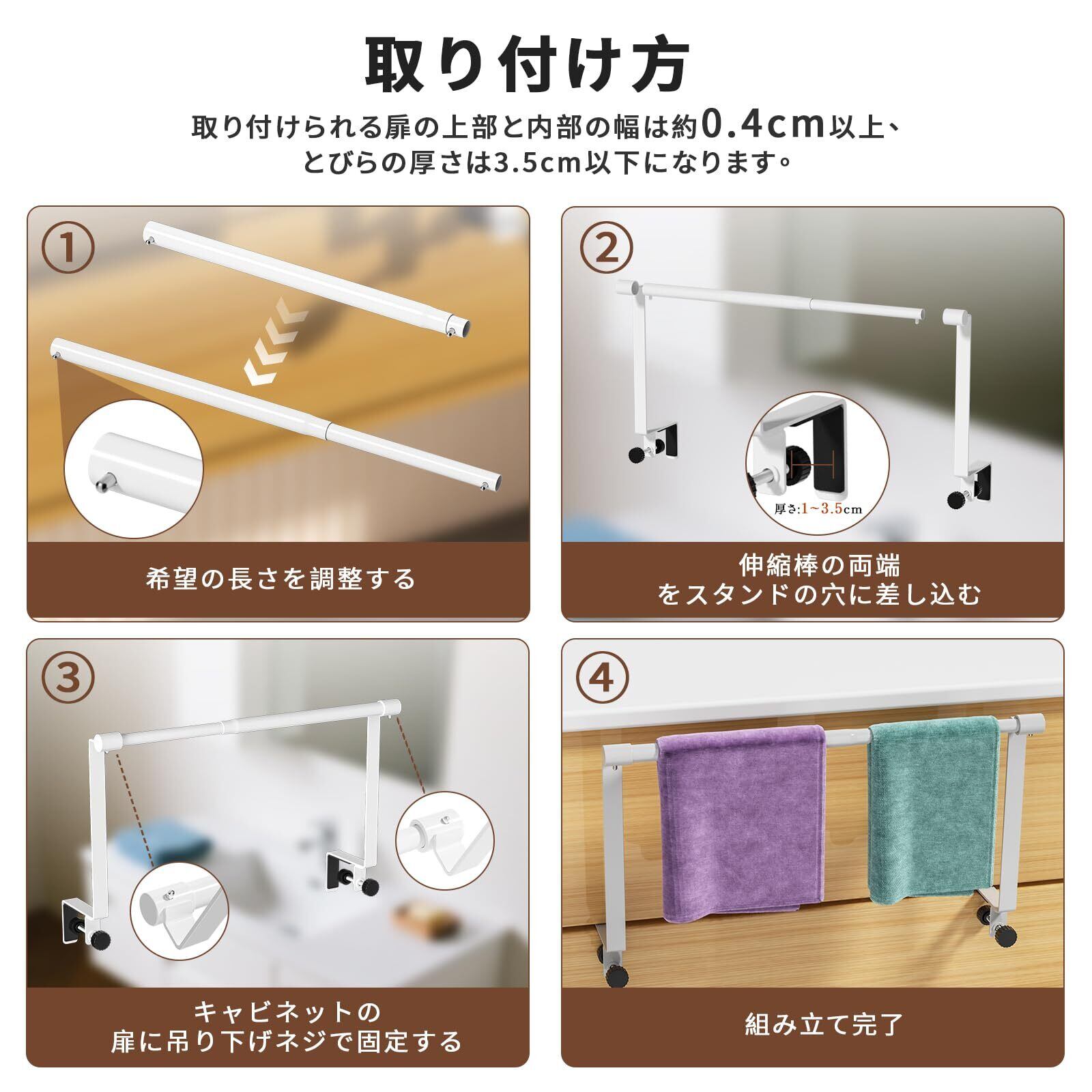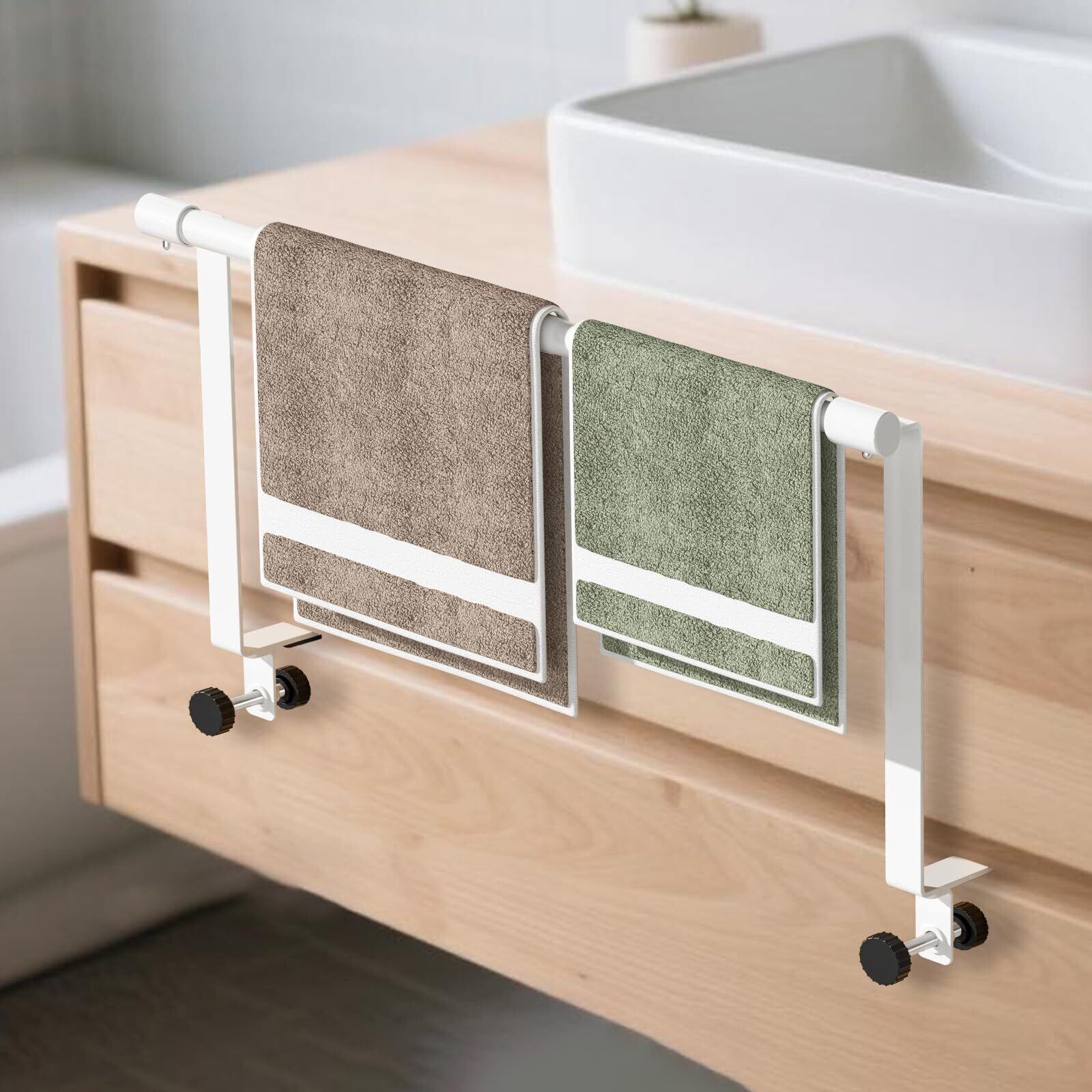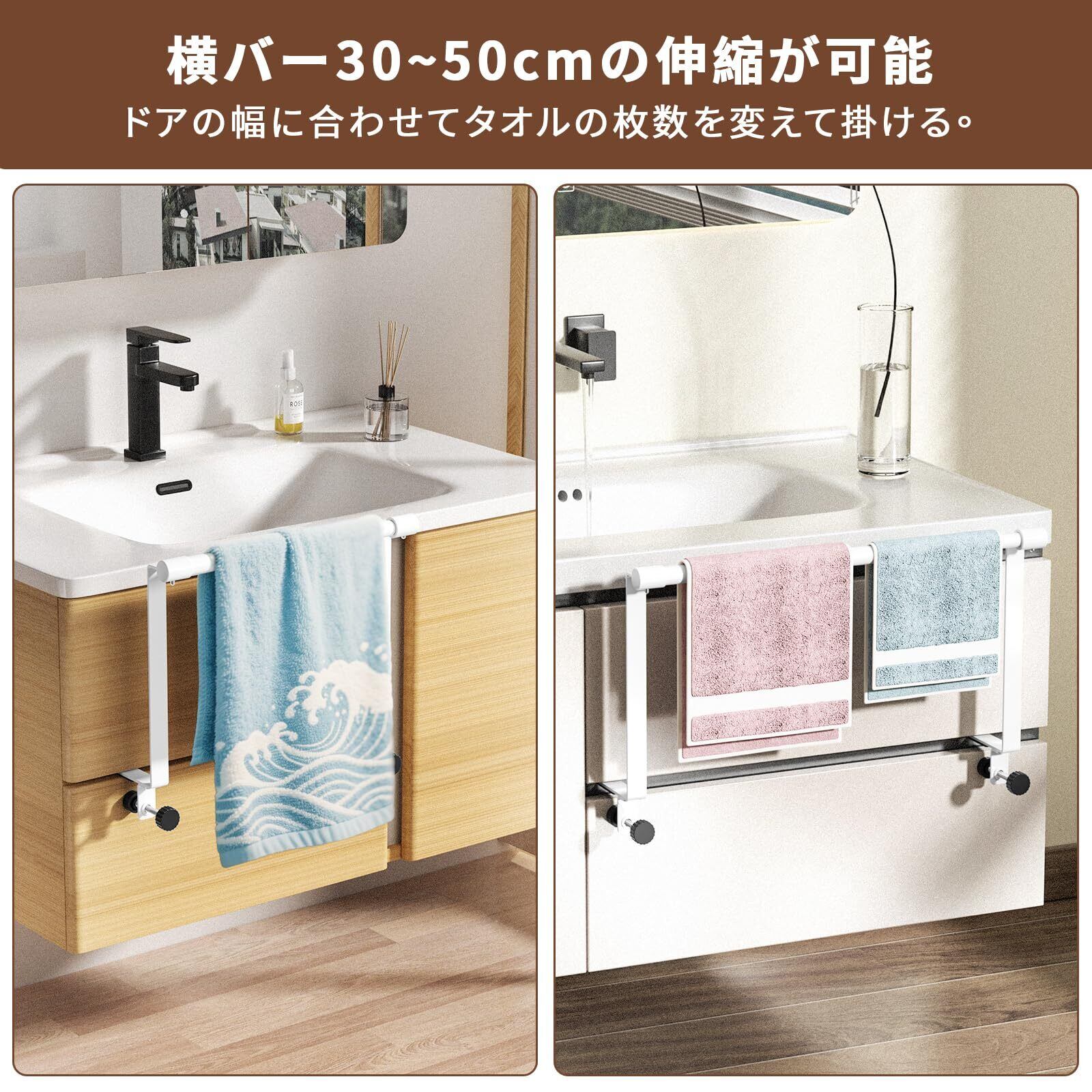【取り付けやすい】特別なエ事は不要で、すぐに使い始めることができ、タオルかけをキャビネットドアまたは引き出しに引っ掛けるだけです。吸盤式とは違い、落下の心配がありません。
