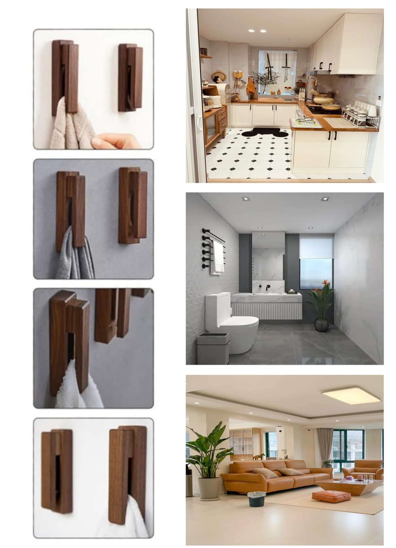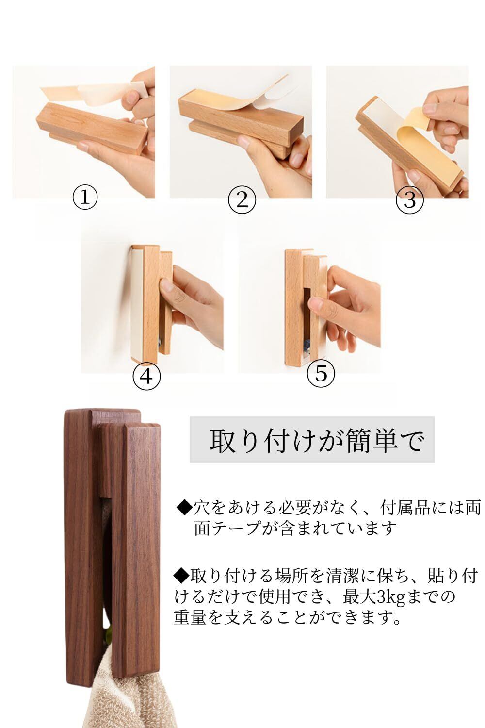 YFFSFDC タオル掛け 木製 北欧風 粘着シートタイプ タオルハンガー 洗面所