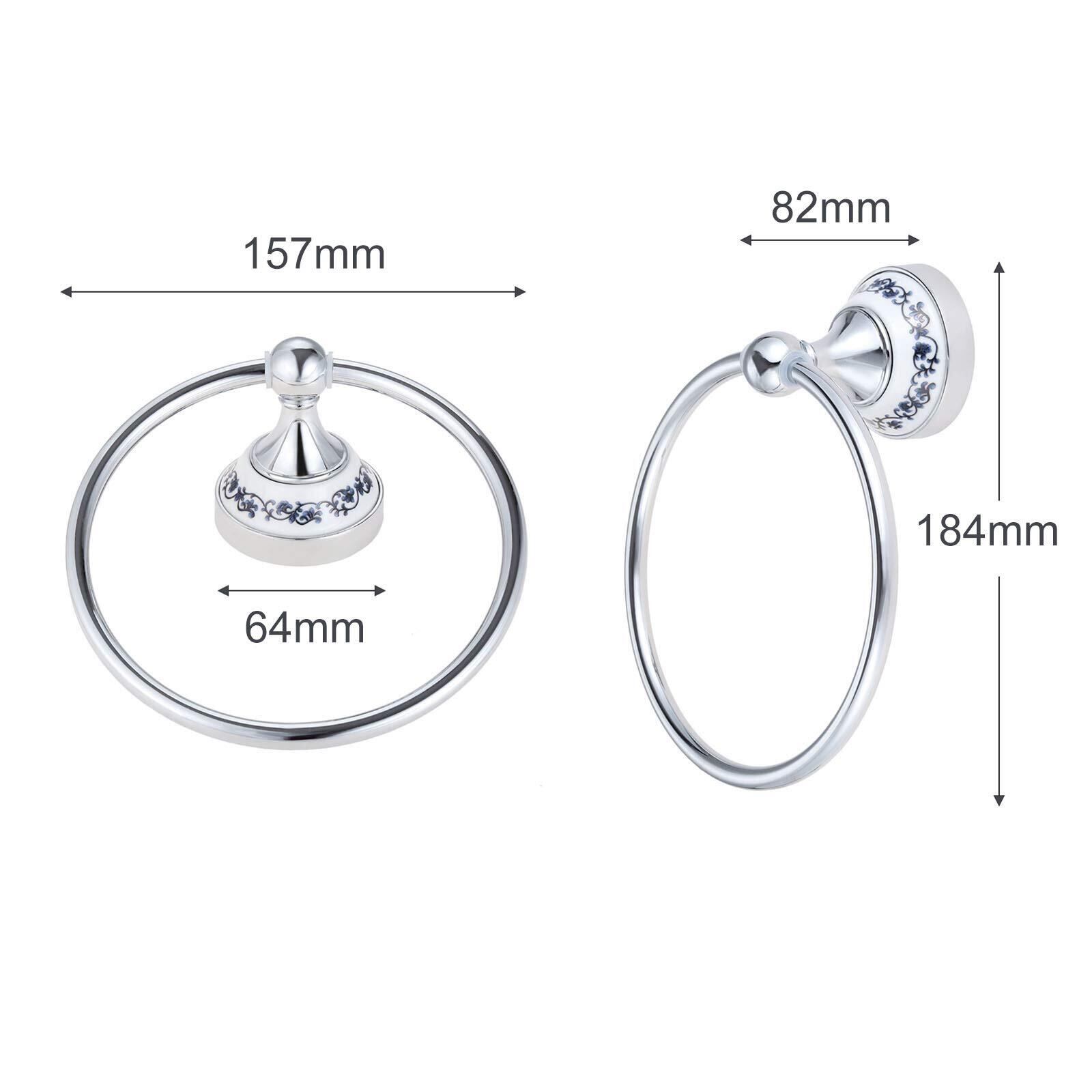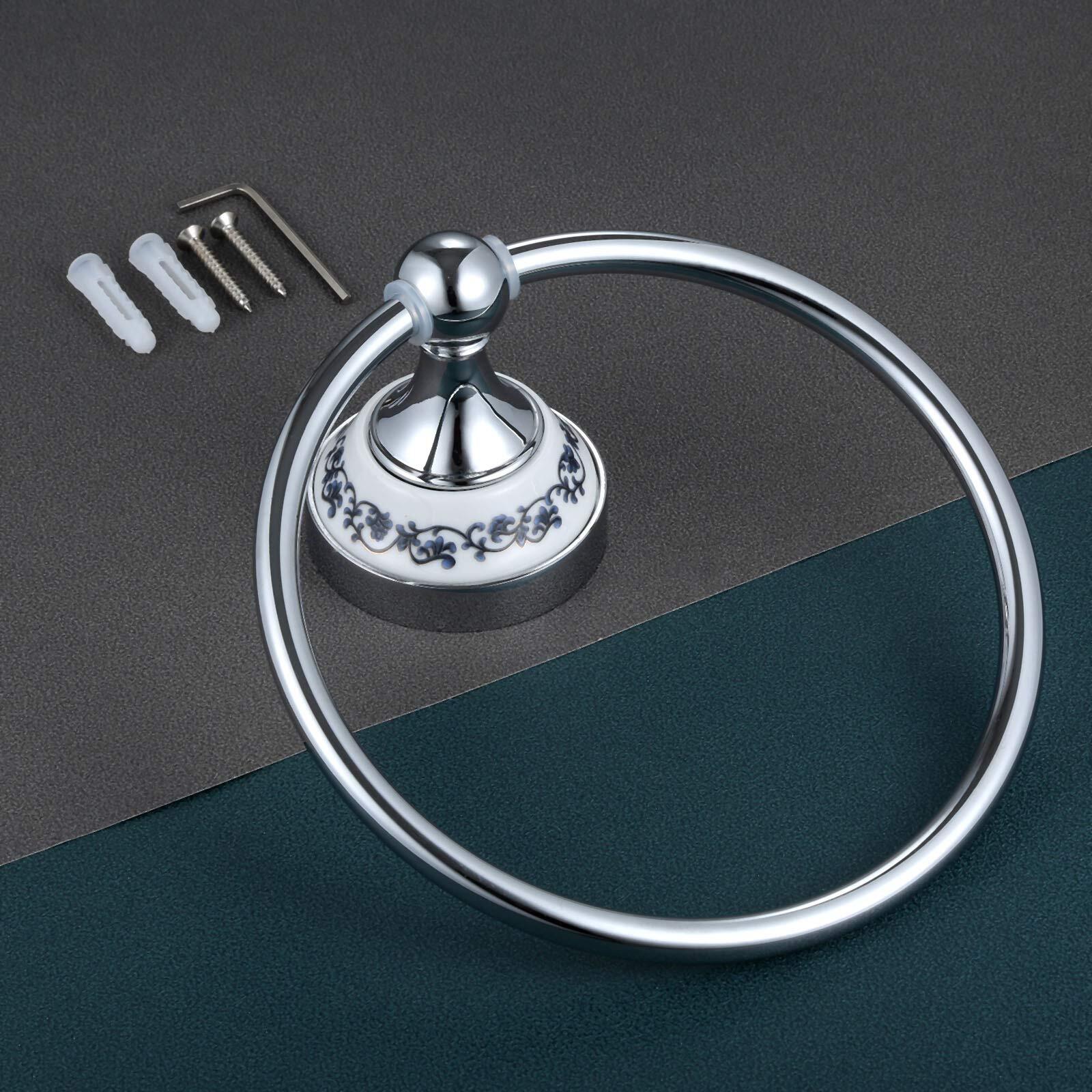 【仕様】タオルリングの素材:ステンレス鋼、亜鉛合金、セラミック カラー:シルバー サイズ:タオルリングの外径:15.7cm 金属ネジ:M4x30mm 樹脂プラグ:φ6×30mm