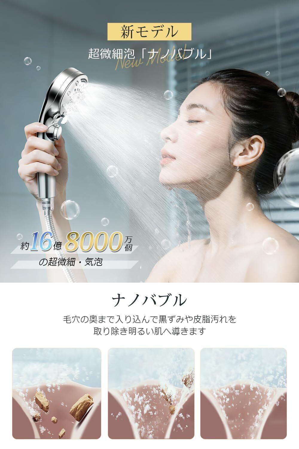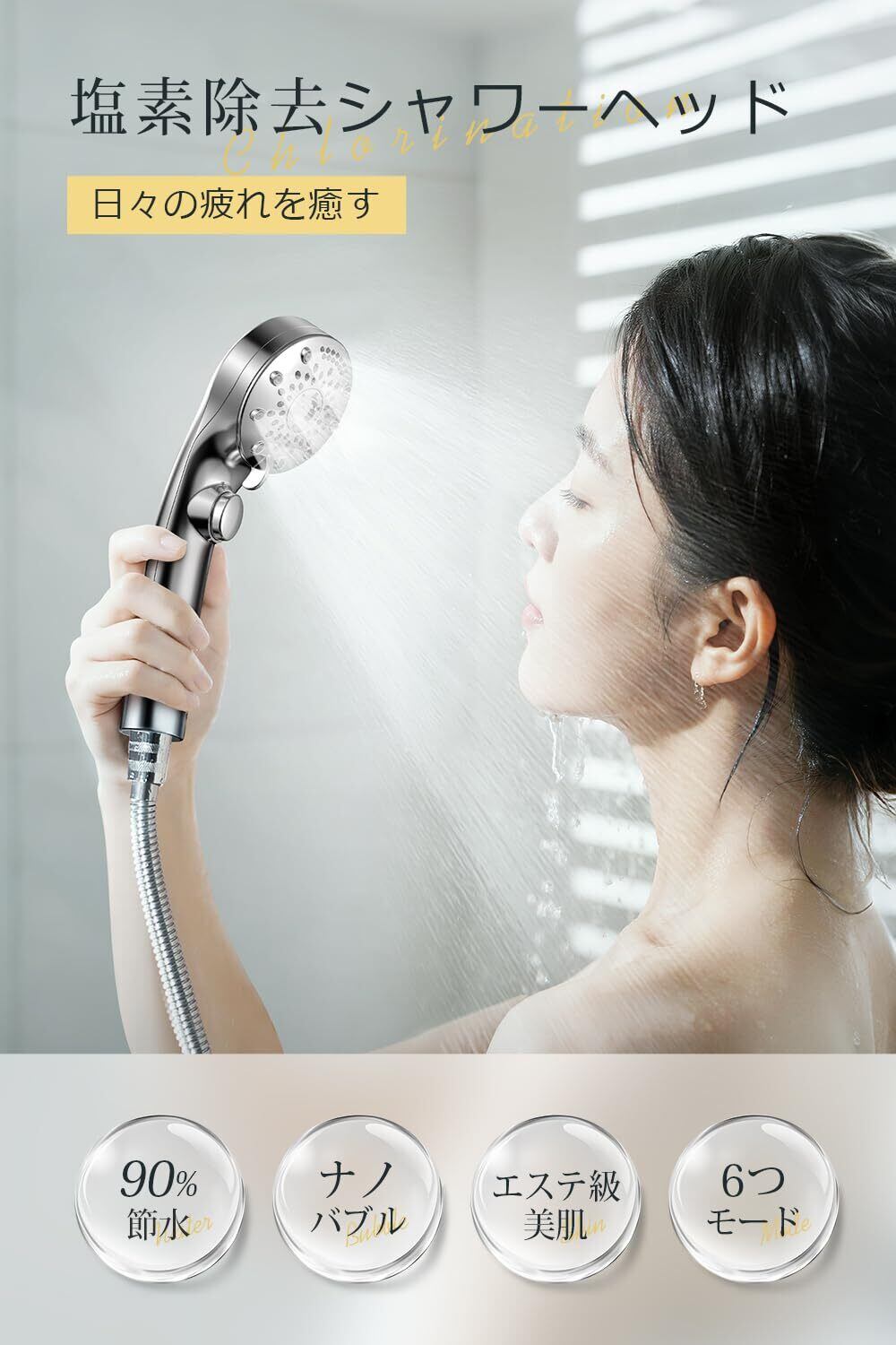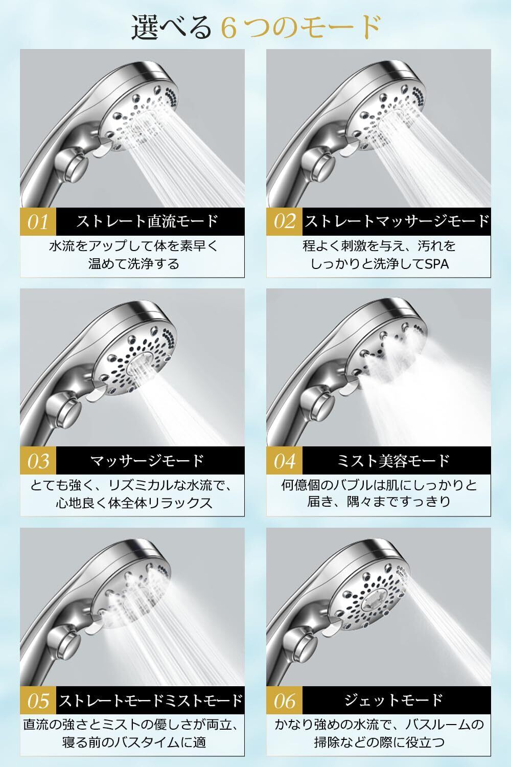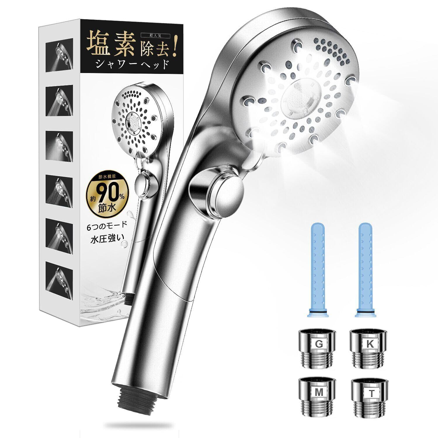 シャワーヘッド マイクロナノバブル 【90%超節水・髪しっとり塩素除去・頭皮まで洗浄】 シャワーヘッド 節水 高水圧 手元止水 ミストシャワーヘッド ナノバブル 超微細泡 極細水流 6段階水流 肌ケア 美髪 毛穴汚れ除去 増圧設計 高洗浄力 保温 保湿 うるおい 水漏れ防止 取り付け簡単 4種類アダプター付き
