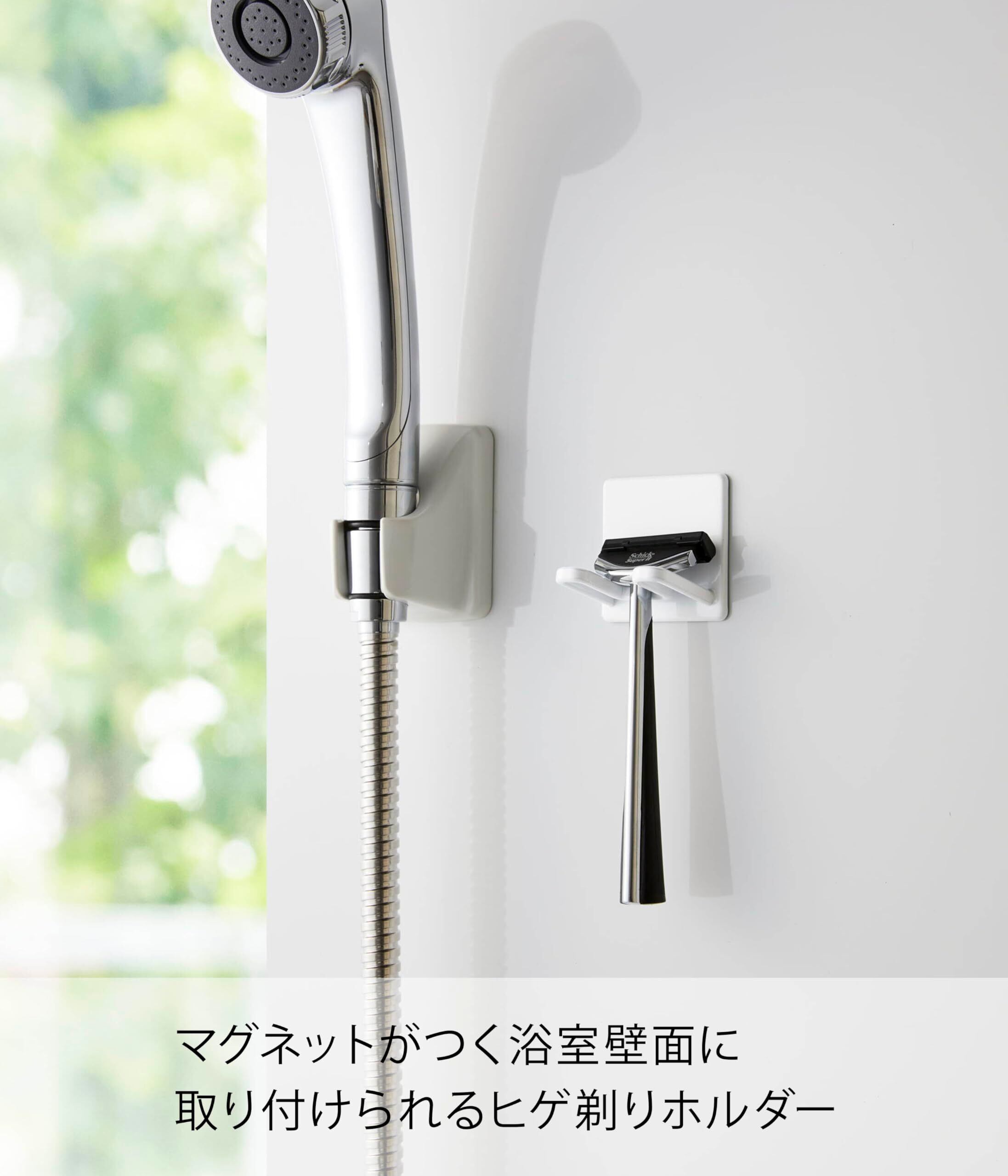 マグネットが付く浴室壁面に簡単取り付けのヒゲ剃りホルダー。