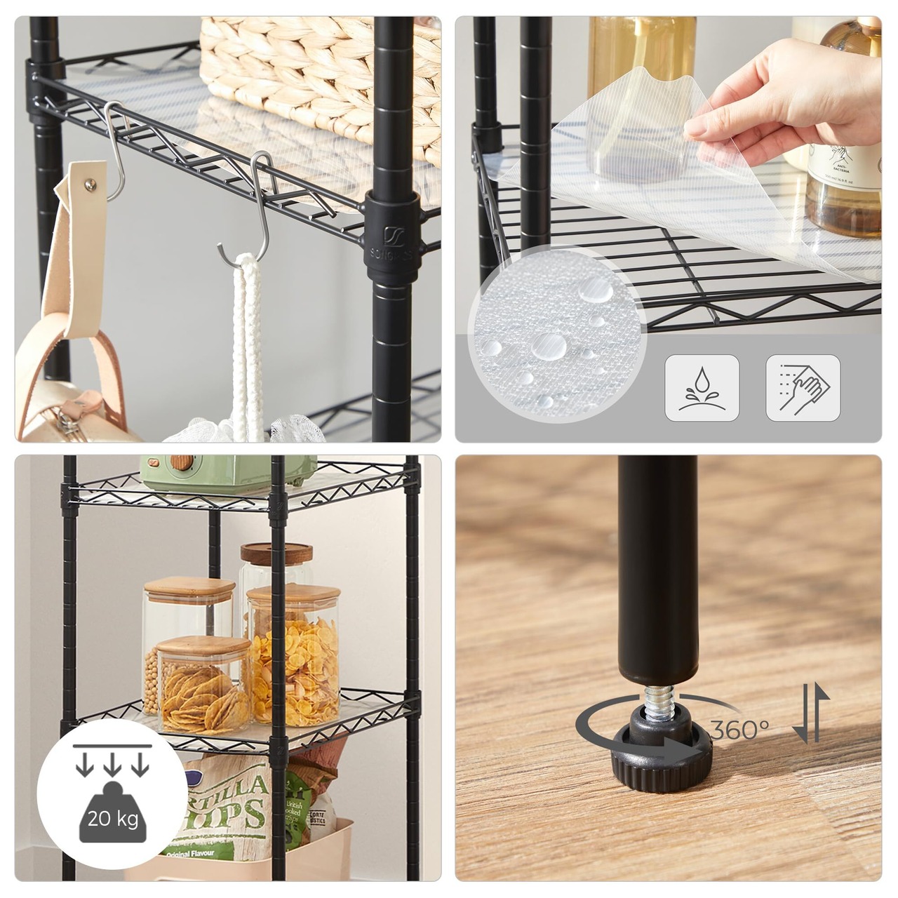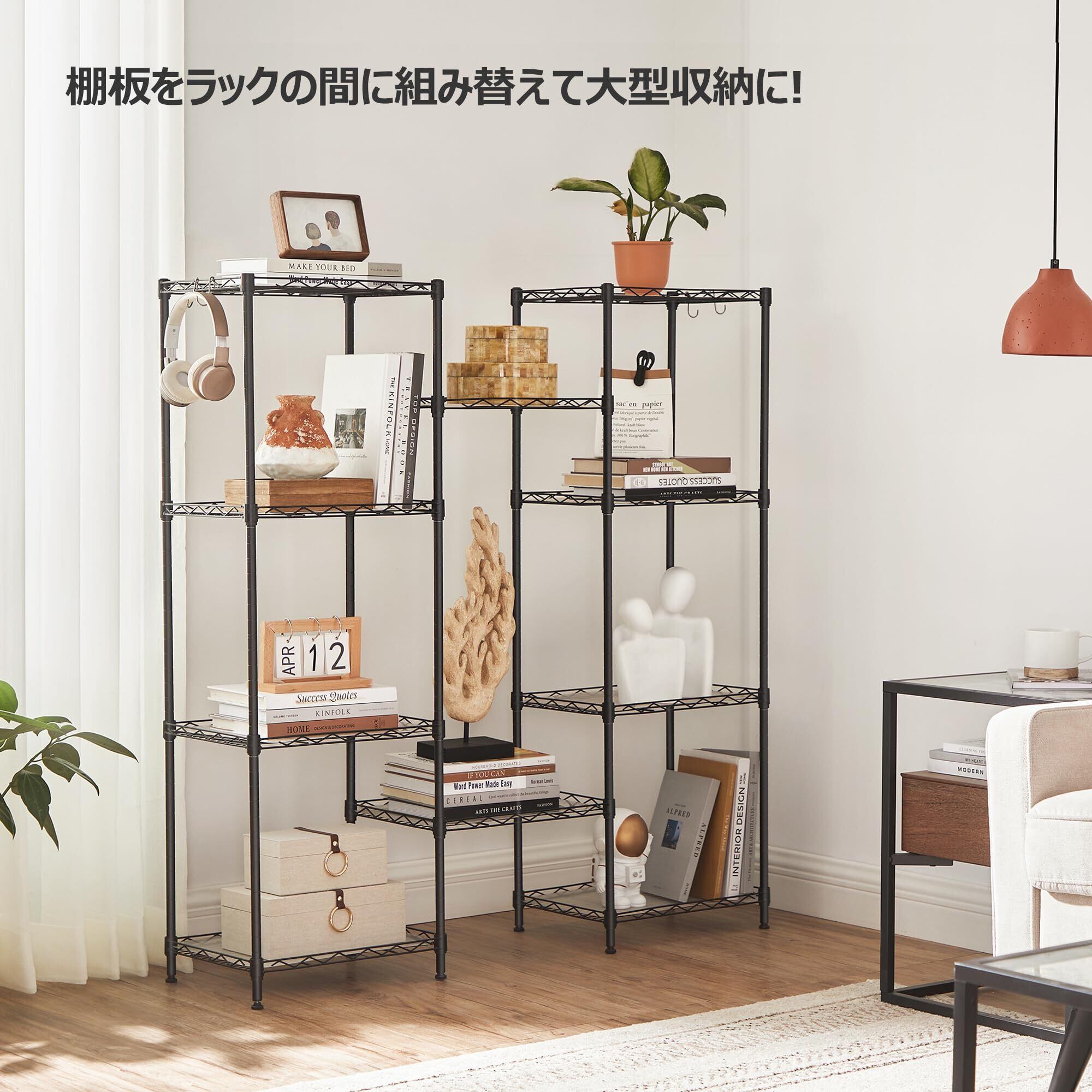 【高耐久性のスチールラック】粉体塗装されたスチール製の本体は、長期間の使用でも錆びにくく、耐久性抜群。重い物を置いても安心して使えます。