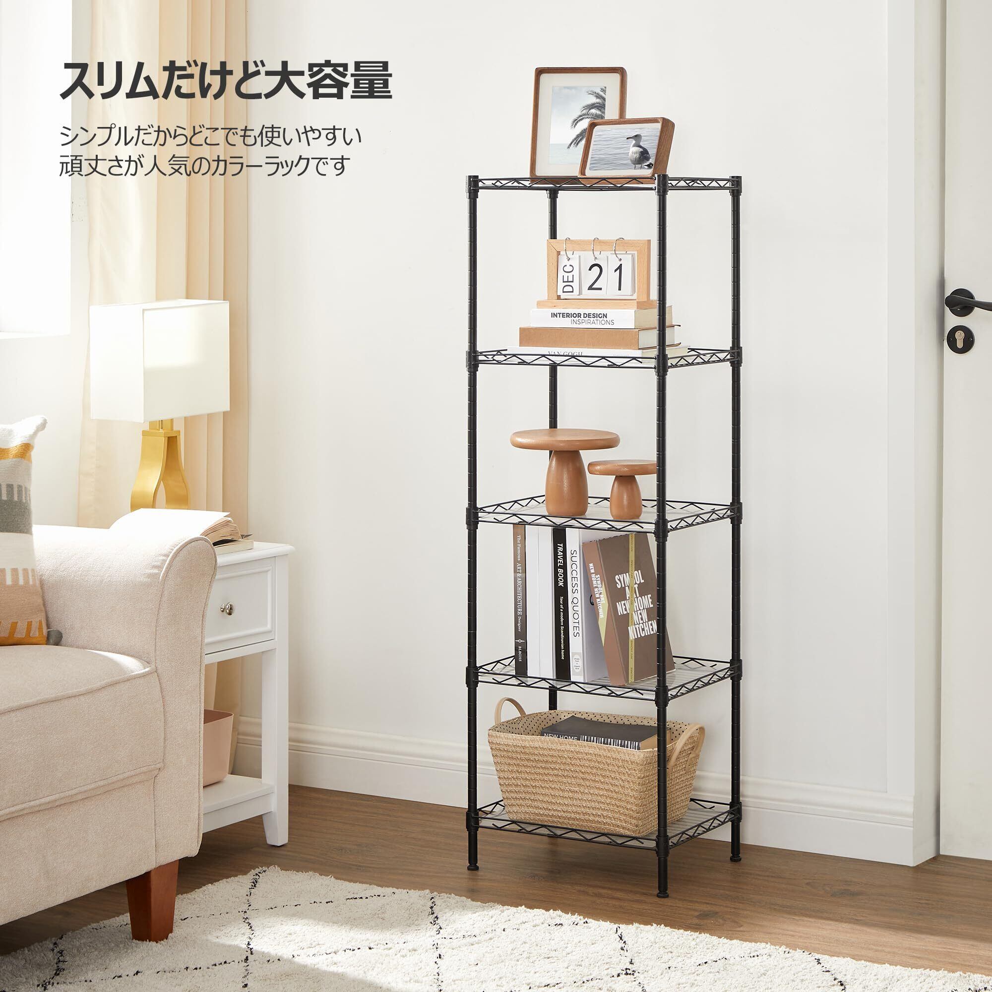 【省スペース設計】高さ122cmの五段ラックで、縦の空間を最大限に活用。小物から大きな物まで、たっぷり収納できます。