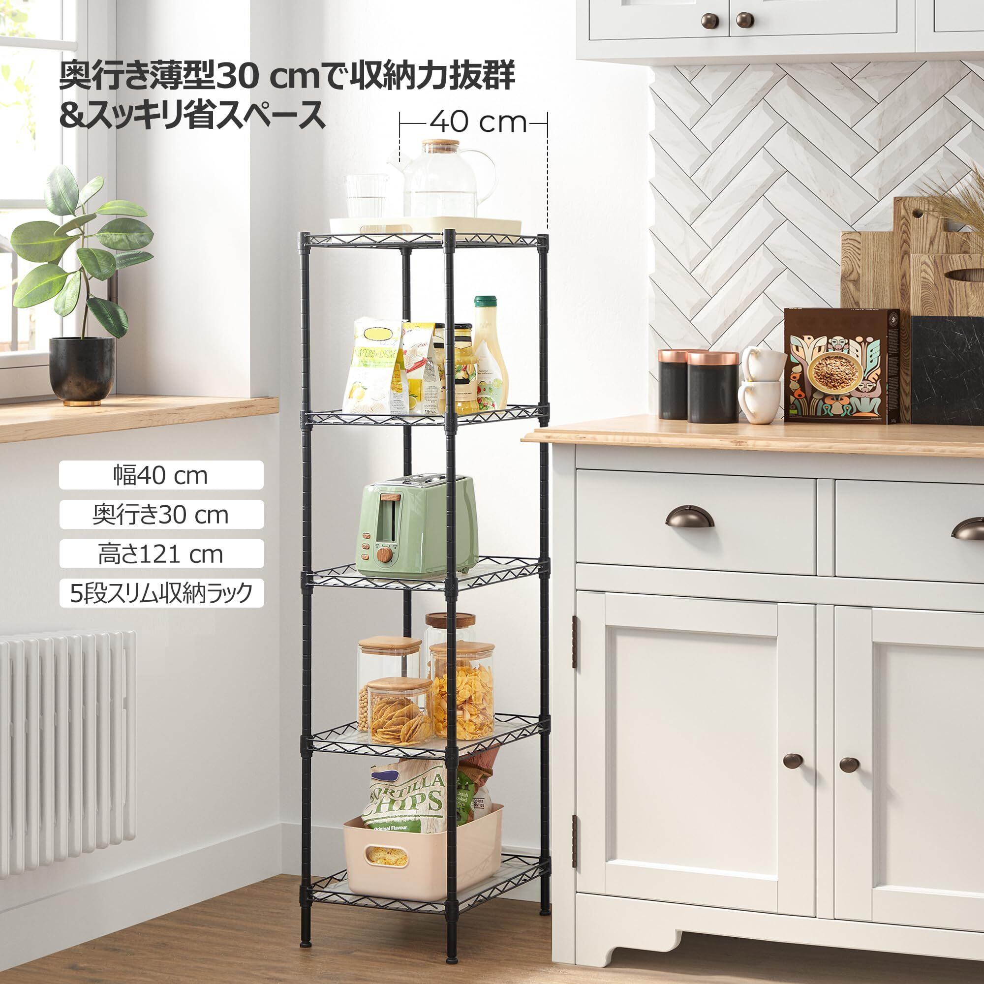 【2025最新】SONGMICS ラック幅40CM スチールラックラ五段 隙間収納 棚 スリム キッチンワゴン 浴室収納 収納ラック 高度 調整可能 おしゃれ シェルフ 奥行30 新生活 一人暮らしシルバー高耐久性 シルバーLGR115E01V1