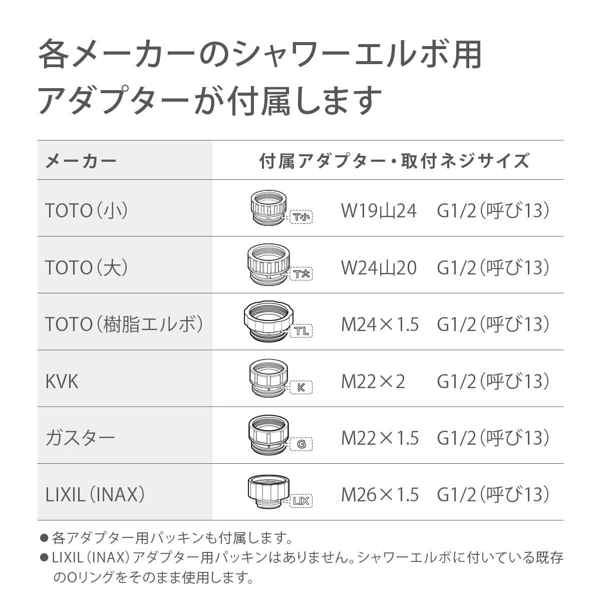 そのまま取り付け可能:タカギ、KAKUDAI、MYM、SAN-EI、LIXIL(INAX)