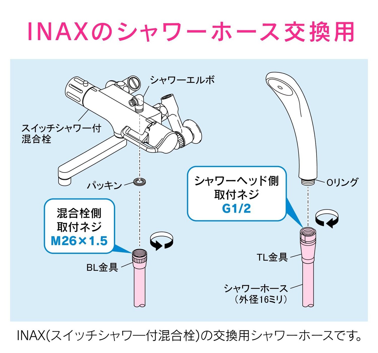 ・LIXIL(INAX)スイッチシャワ―付混合栓の交換用シャワーホース