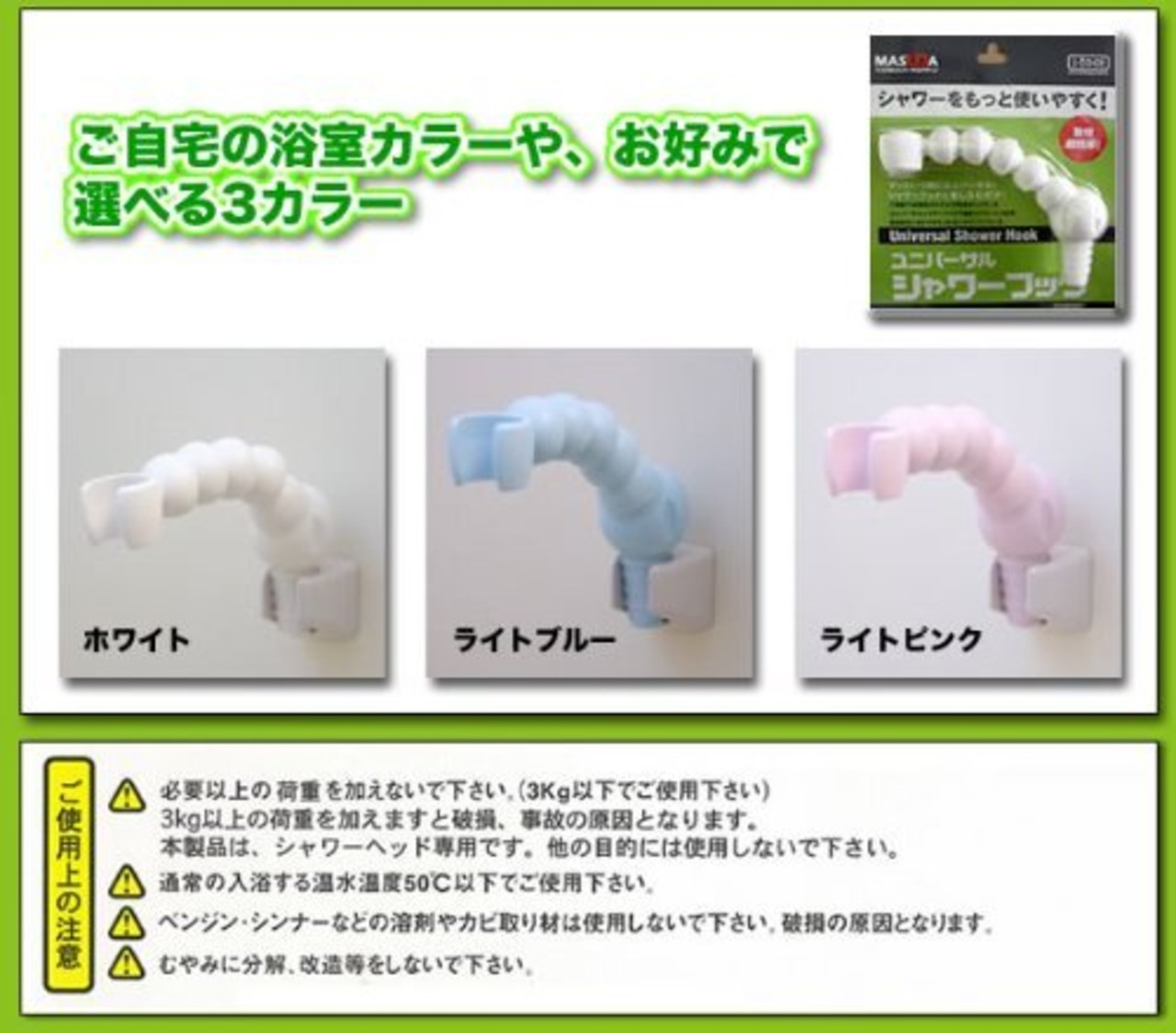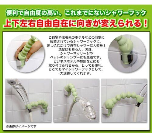 お使いのシャワーフックに差し込むだけで、シャワーの向きが上下左右自在に変えられます。