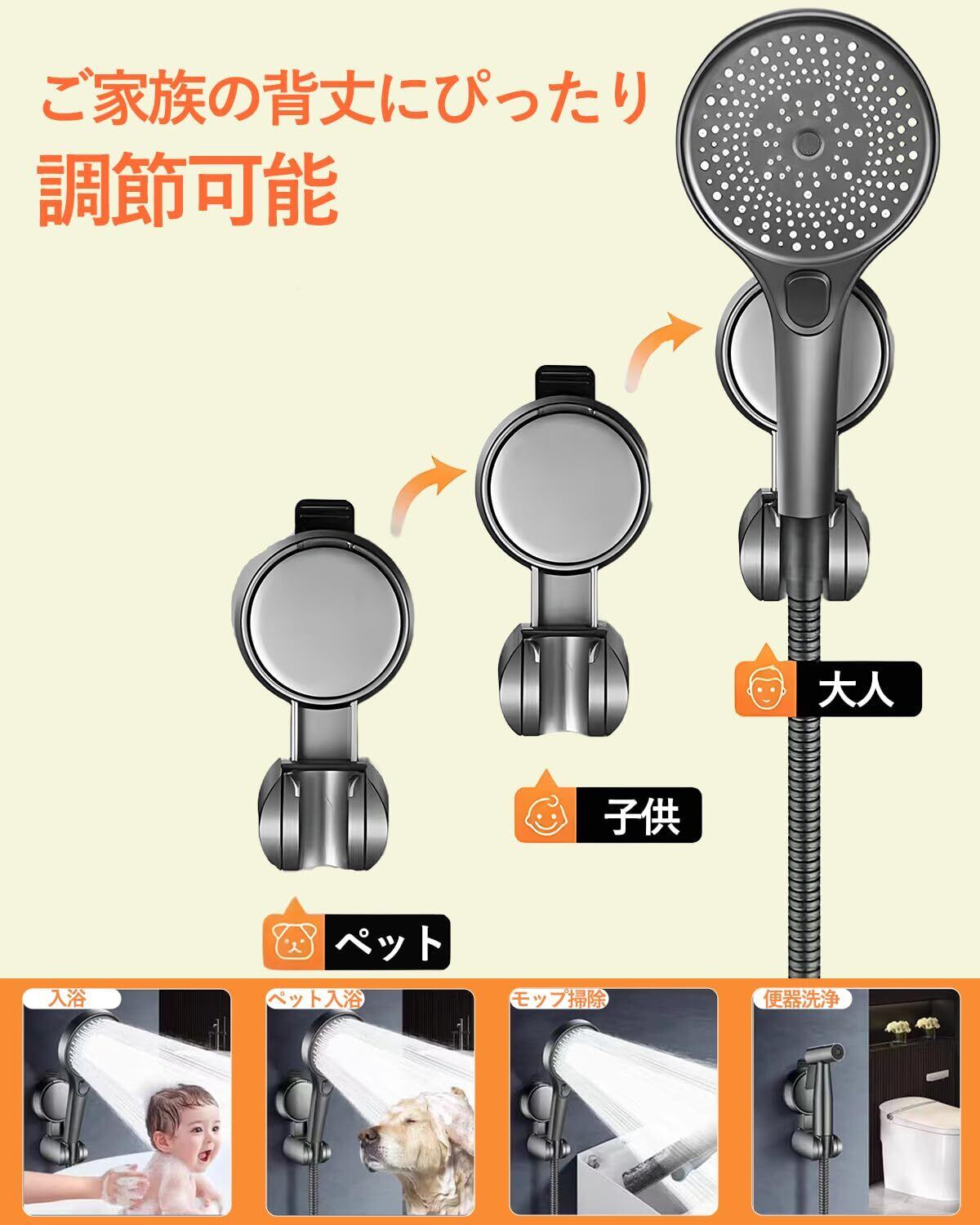 【在庫限り】シャワーフック シャワーホルダー 強力真空吸盤 穴あけ不要 角度調整 繰り返し使用可能 シャワーヘッド 壁掛け 取付簡単 ネジ止め不要 防水防錆 吸盤フック 浴室用 ペット 大人 子供用 長持ち シャワーフック