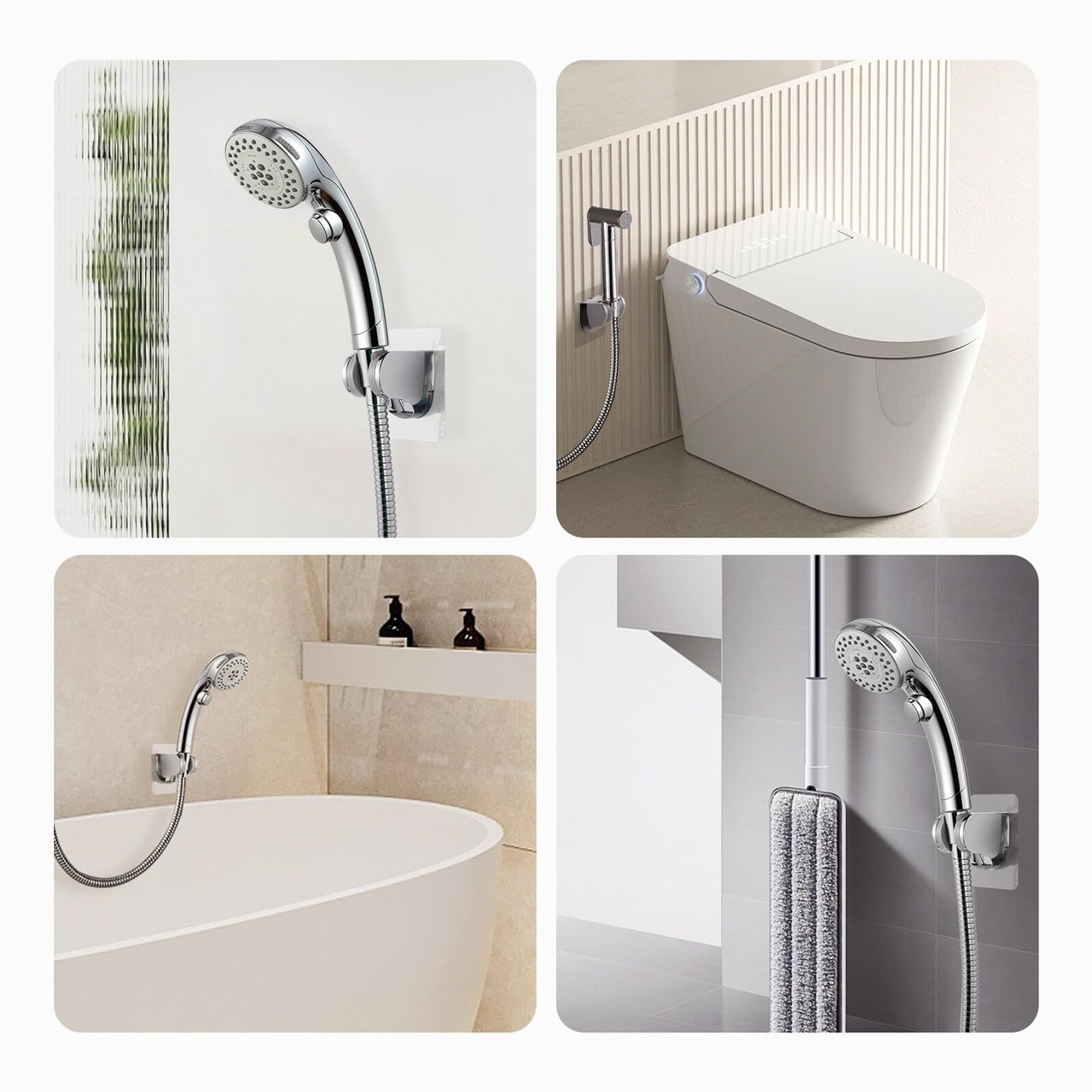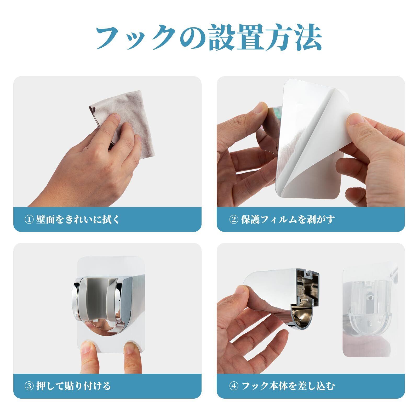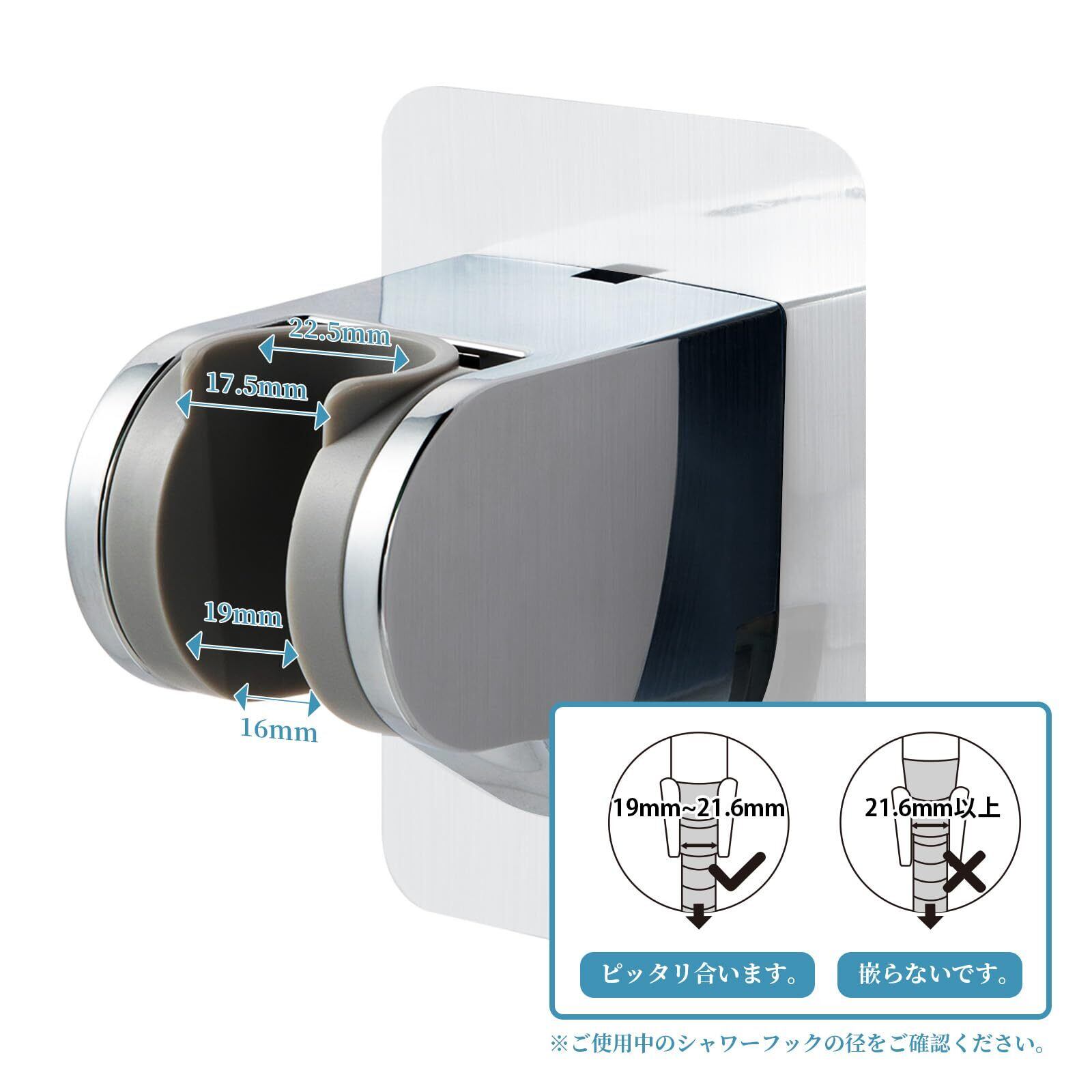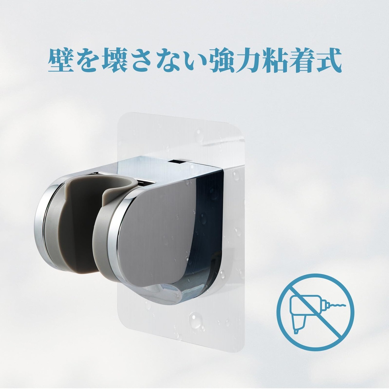 OFFO 粘着式シャワーフック シャワー角度45°調整可能 シャワーホルダー 簡単取付 クロムメッキ 取付説明書付き