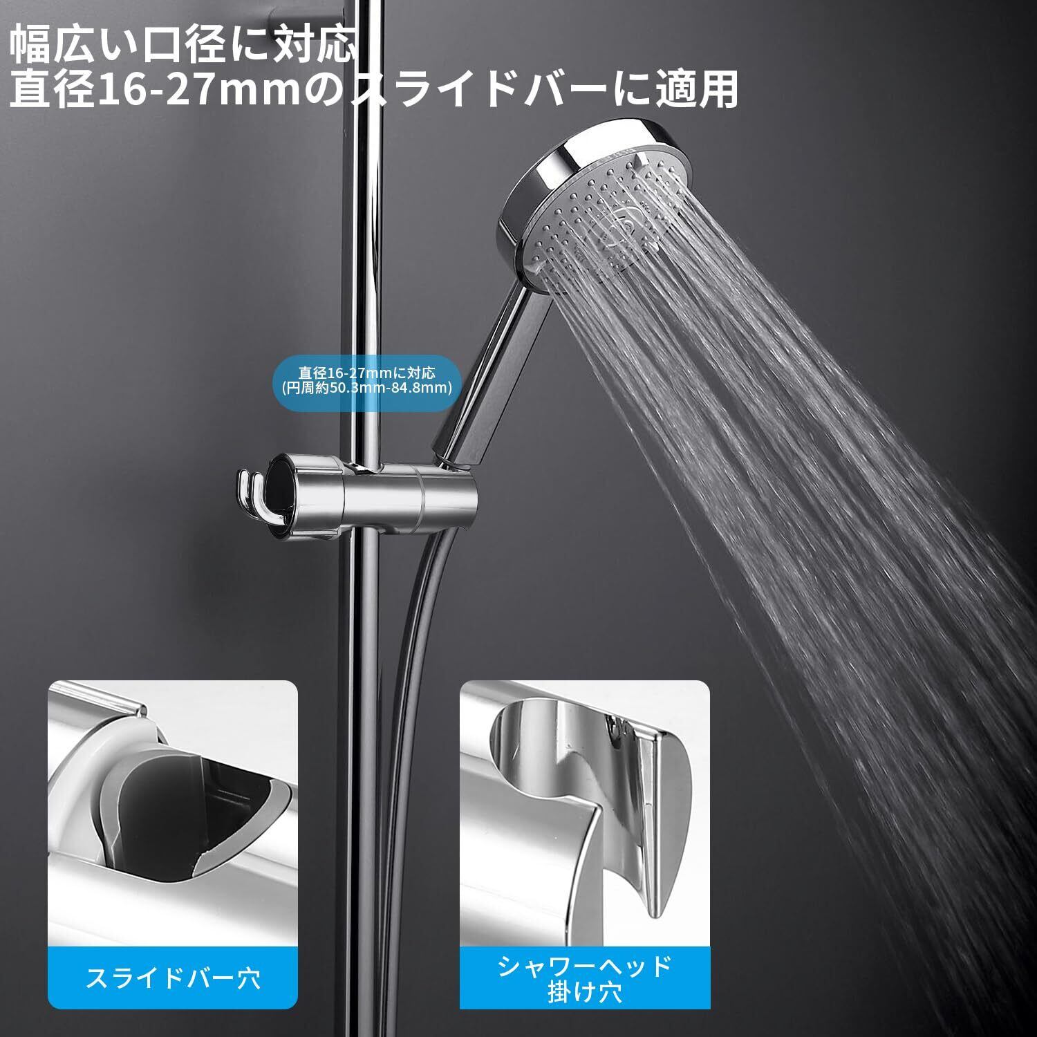 シャワーフック φ16~27mmのスライドバーに対応 シャワーフック 修理交換用 スライド シャワー フック 角度 360度回転 シャワーヘッドホルダー シャワーホルダー シャワーヘッド フック 吊り下げフック