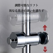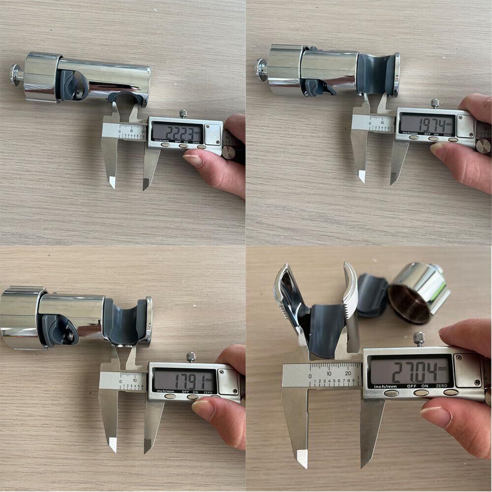 1.【高さ調節可能】このブラケットには調節可能なリフト機能があり、異なる高さの人々のニーズを満たすことができ、大人も子供も自分の高さにシャワーヘッドを簡単に調節でき、より快適なシャワー体験を提供します。 写真からわかるように、ブラケットはシャワーロッドに沿って上下に動かすことができ、ユーザーが操作するための明確な「上」と「下」の指示があります。 2.【取り付けが簡単】 ユニバーサルな取り付け設計で、直径16~27mmのシャワーロッドに適しています。 複雑な工具や手順を必要とせず、ストレートロックファスナーを取り外す必要もなく、簡単な操作だけで取り付けが完了するため、ユーザーの時間と労力を大幅に節約できます。 写真は、新旧の取り付け方法を比較することで、この製品の取り付けがいかに簡単かを示しており、より速く、より効率的である。 3.【強い安定性と脱落防止】ブラケットには樹脂製の保護パッドが内蔵されており、ブラケットとシャワーロッドの摩擦を高めて滑り止めの役割を果たすだけでなく、使用中にシャワーヘッドが脱落するのを効果的に防止し、ブラケット使用の安全性と安定性を確保します。 写真から、ブラケット内部の樹脂保護パッドと、関連テキストの説明「樹脂保護パッド」と「脱殻防止構造」を見ることができます。 4.【自由自在な角度調整】シャワーヘッドの角度をユーザーの好みに合わせて自由に調整でき、シャワーを十分に浴びることができます。 体の特定の部分を洗い流したいときでも、シャワーの水流を大きく楽しみたいときでも、シャワーヘッドを回転させるだけで簡単に行えます。 この機能は、青い矢印と というテキスト、そしてシャワーヘッドの角度を調整する方法を示す手によって、写真にはっきりと示されています。 5.【スタイリッシュで耐久性】シャワーヘッドホルダーは、工学グレードのABS素材にクロムメッキ仕上げを施し、耐久性に優れた作りになっています。キャッチ部分には天然樹脂パッドを使用し、摩擦を高めてシャワーヘッドホルダーが上下にスライドするのを防ぎ、クロムメッキの表面は日常的な傷や損傷に耐えられるように設計されています。