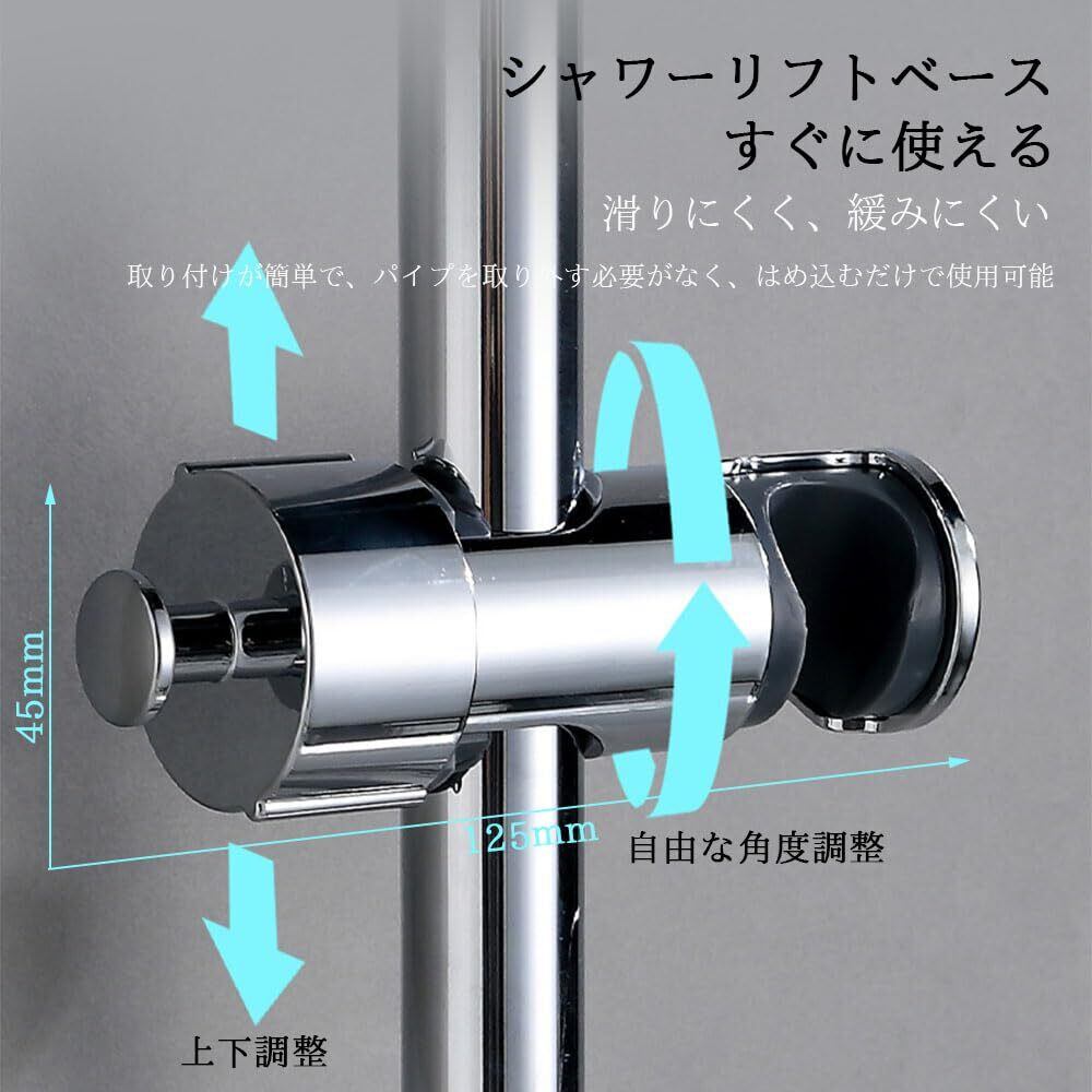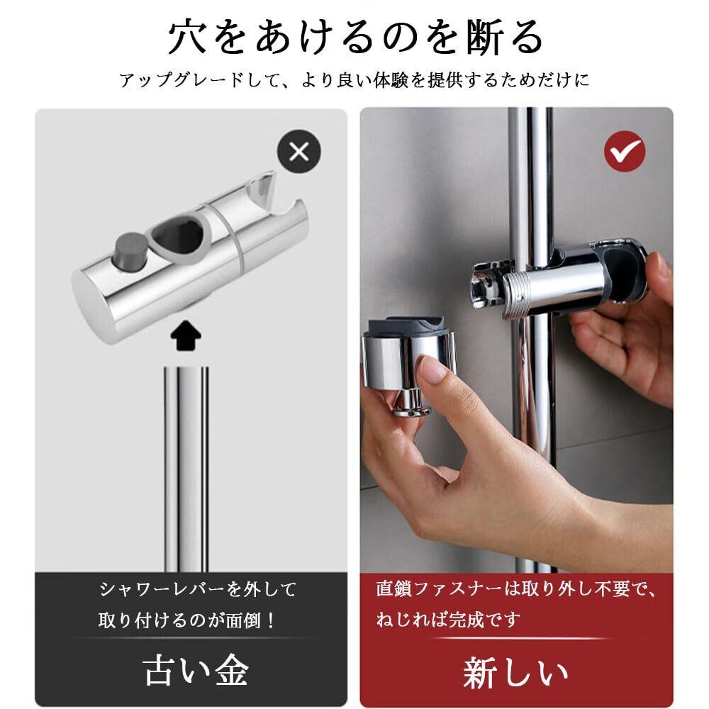 シャワーフック シャワーホルダー シャワーヘッドホルダー 修理交換用 16mm~27mm スライドバーに対応 簡単取付 高さ 角度調整 可動式 防水 防錆 取り外し 可能 穴あけ不要