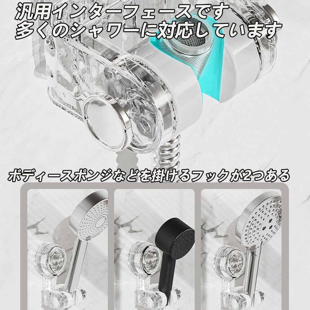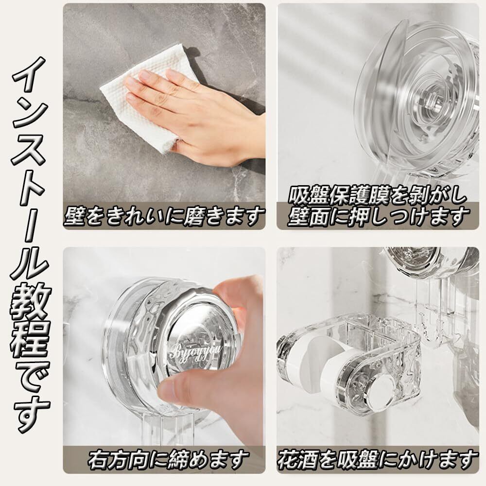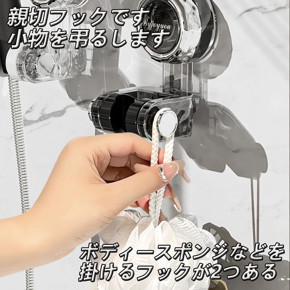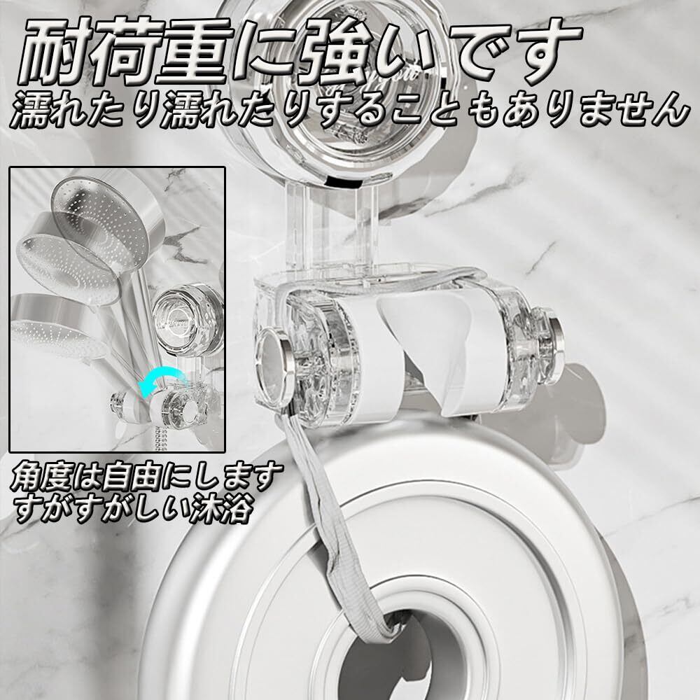 シャワーフック 吸盤 強力 シャワーヘッドホルダー シャワーホルダー 角度調整 防水 防錆 シャワーヘッド かけ 壁掛け 耐水性 耐湿性 簡単取付 穴あけ不要 シャワーブラケット 繰り返し使用 取り外し可能 (透明色-グレー)