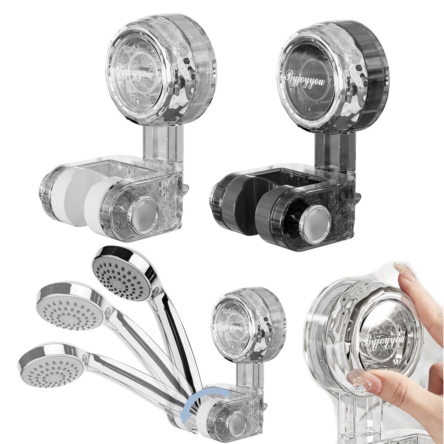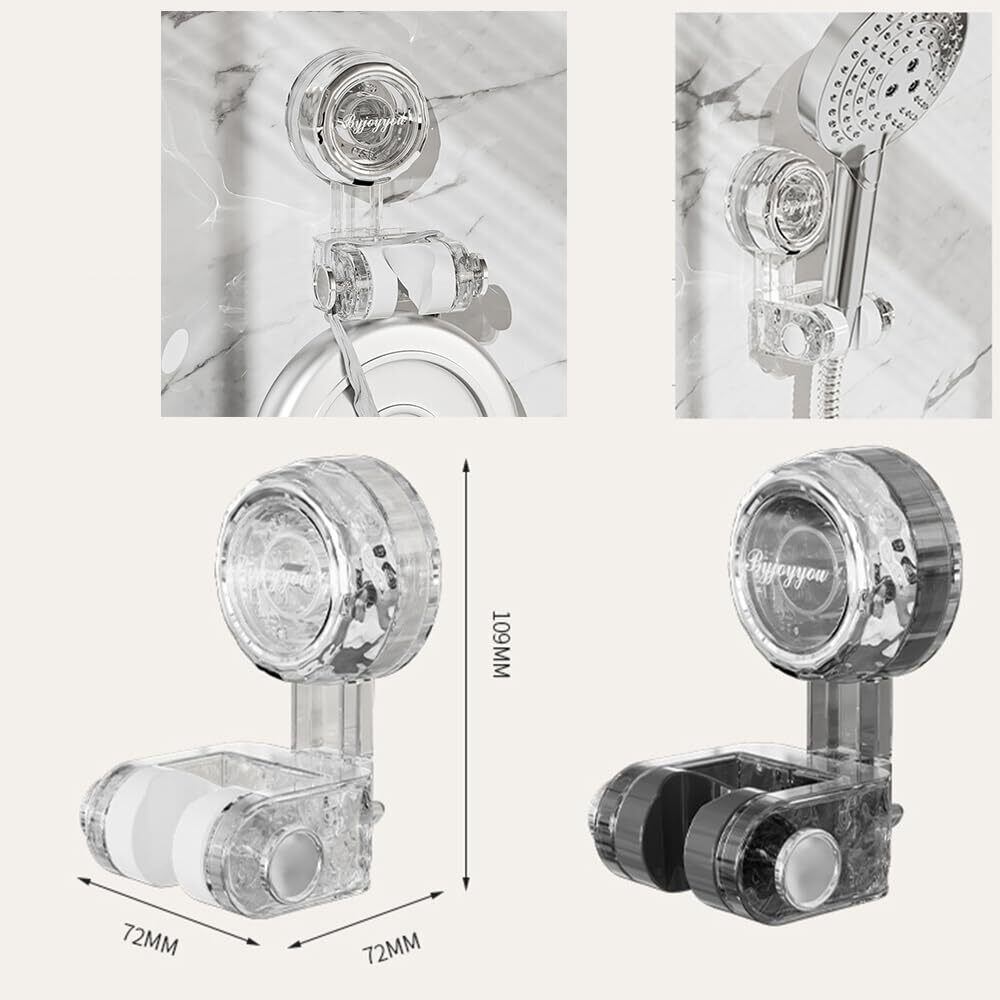【在庫限り】シャワーフック 吸盤 強力 シャワーヘッドホルダー シャワーホルダー 角度調整 防水 防錆 シャワーヘッド かけ 壁掛け 耐水性 耐湿性 簡単取付 穴あけ不要 シャワーブラケット 繰り返し使用 取り外し可能 (透明色-グレー)