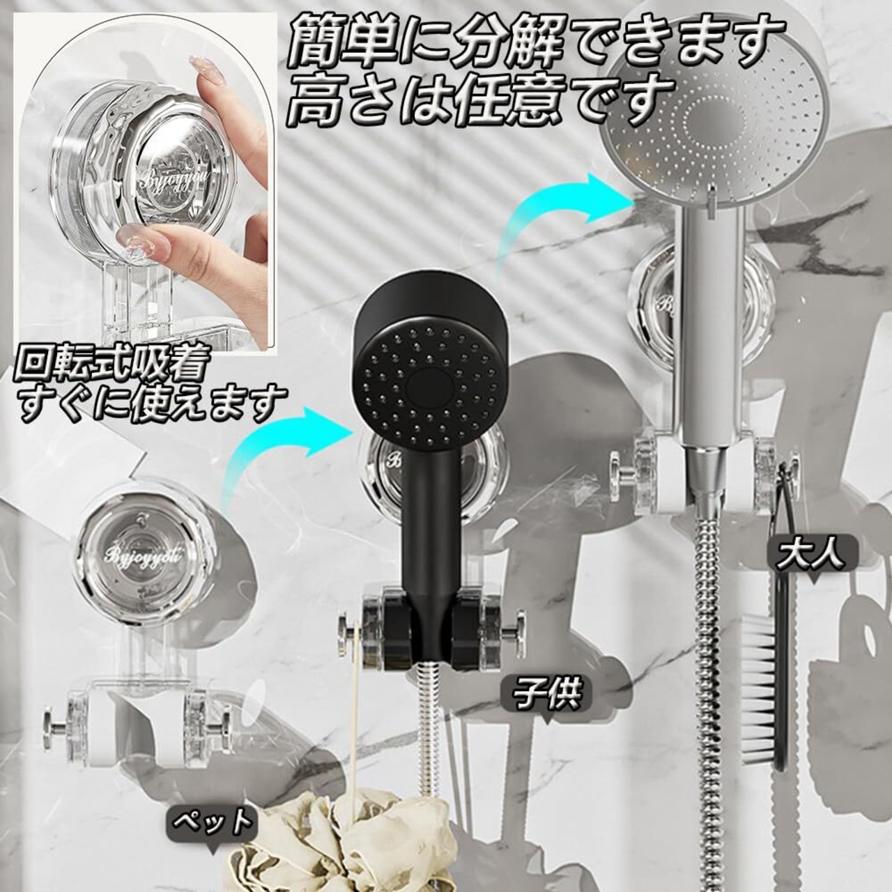 【ほしい場所に自由に付け替えできる】 自由な高さに位置調整!繰り返し取り付けが可能なため、お気に入りのシャワーヘッドをいつでも快適に使えます