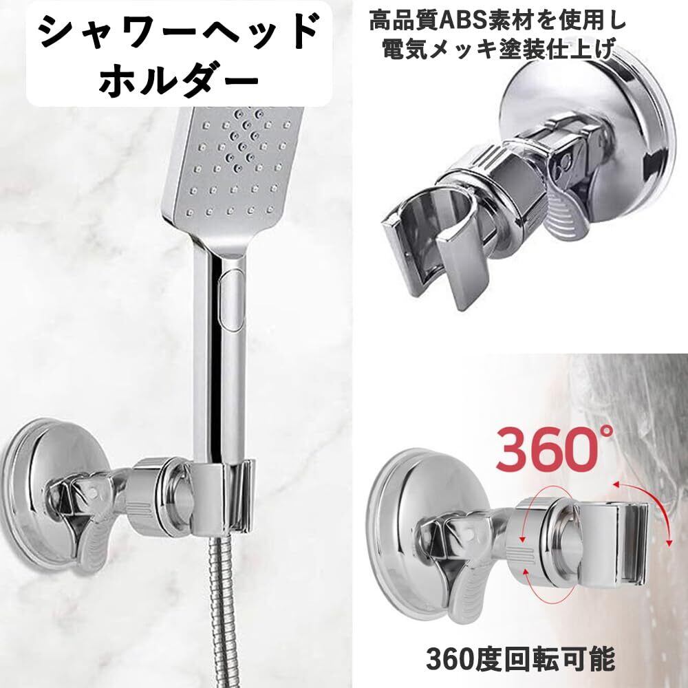 シャワーフックシャワーホルダー お風呂に取付 シャワーヘッドホルダー 吸着 強力吸盤 角度調整可能 穴あけ&ネジ止め不要 汎用 取り付け簡単