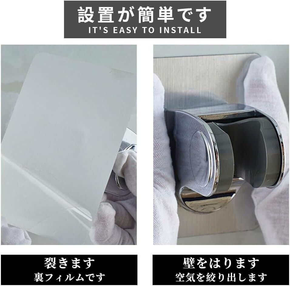 3、取り付けが簡単: 強力な接着剤により、シャワーの角度を変えたり高さを調節する際に穴あけが不要です。