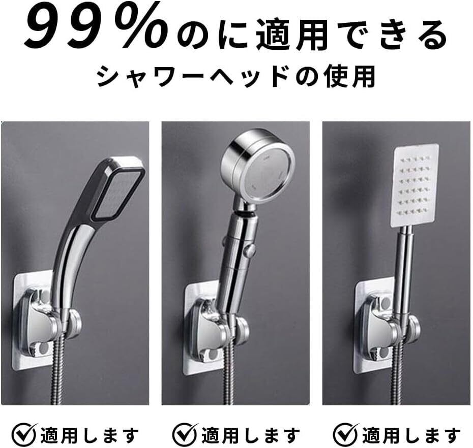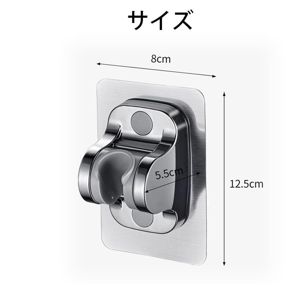 【在庫限り】シャワーフック、シャワーブラケット、ヘッドベース、最新デザイン強力粘着式シャワーフックは穴あけ不要、角度調整可能、壁面取り付け不要、ネジなし設計、耐久性・防水・防錆、バスルームシャワーヘッド用吸盤フック、取り付け簡単、メンテナンス・交換が容易