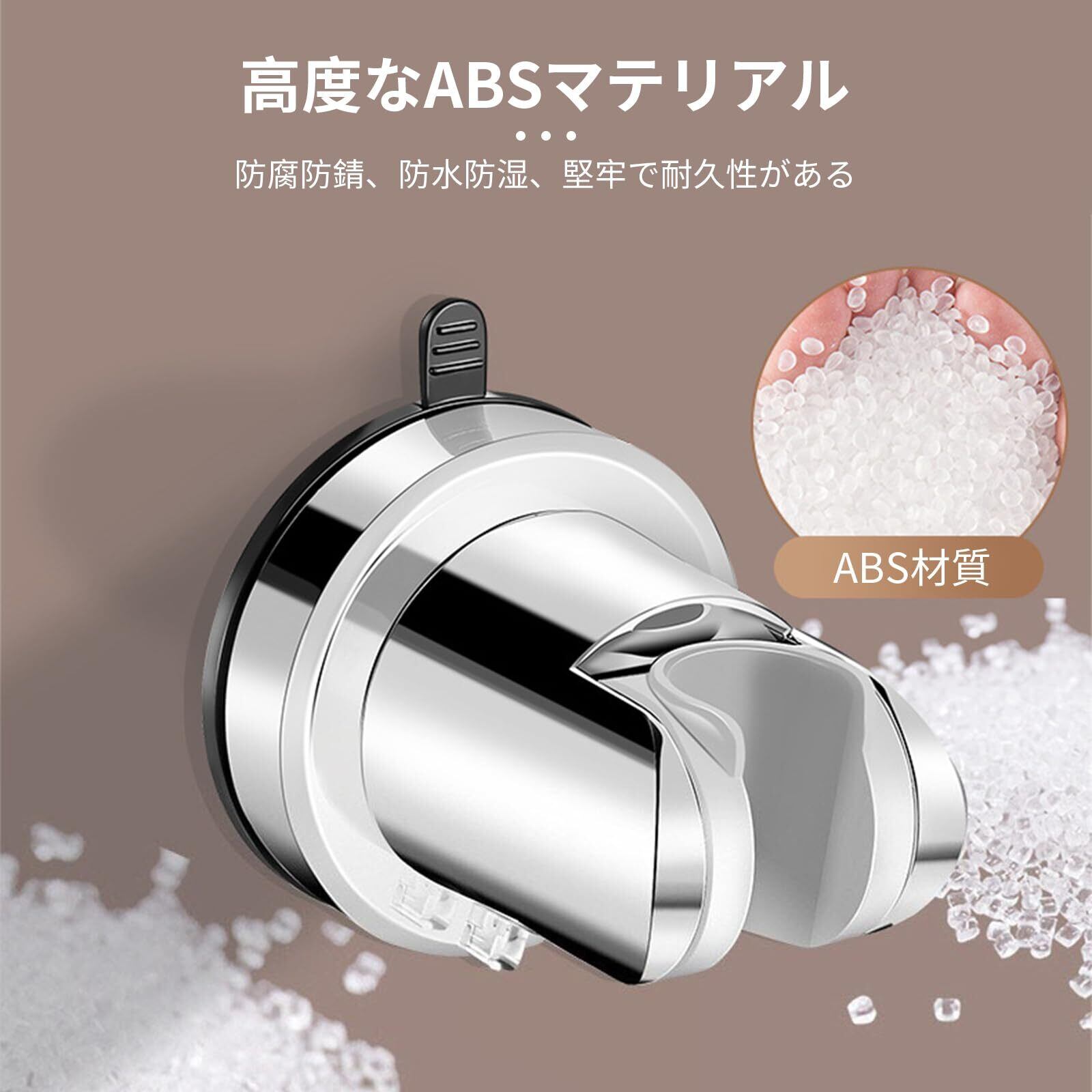 シャワーヘッドホルダー 吸盤 フック 強力 シャワーフック 120°角度調整 真空吸盤 シャワーヘッド シャワーハンガー シャワー固定用ブラケット シャワーシェルフ (シルバー)