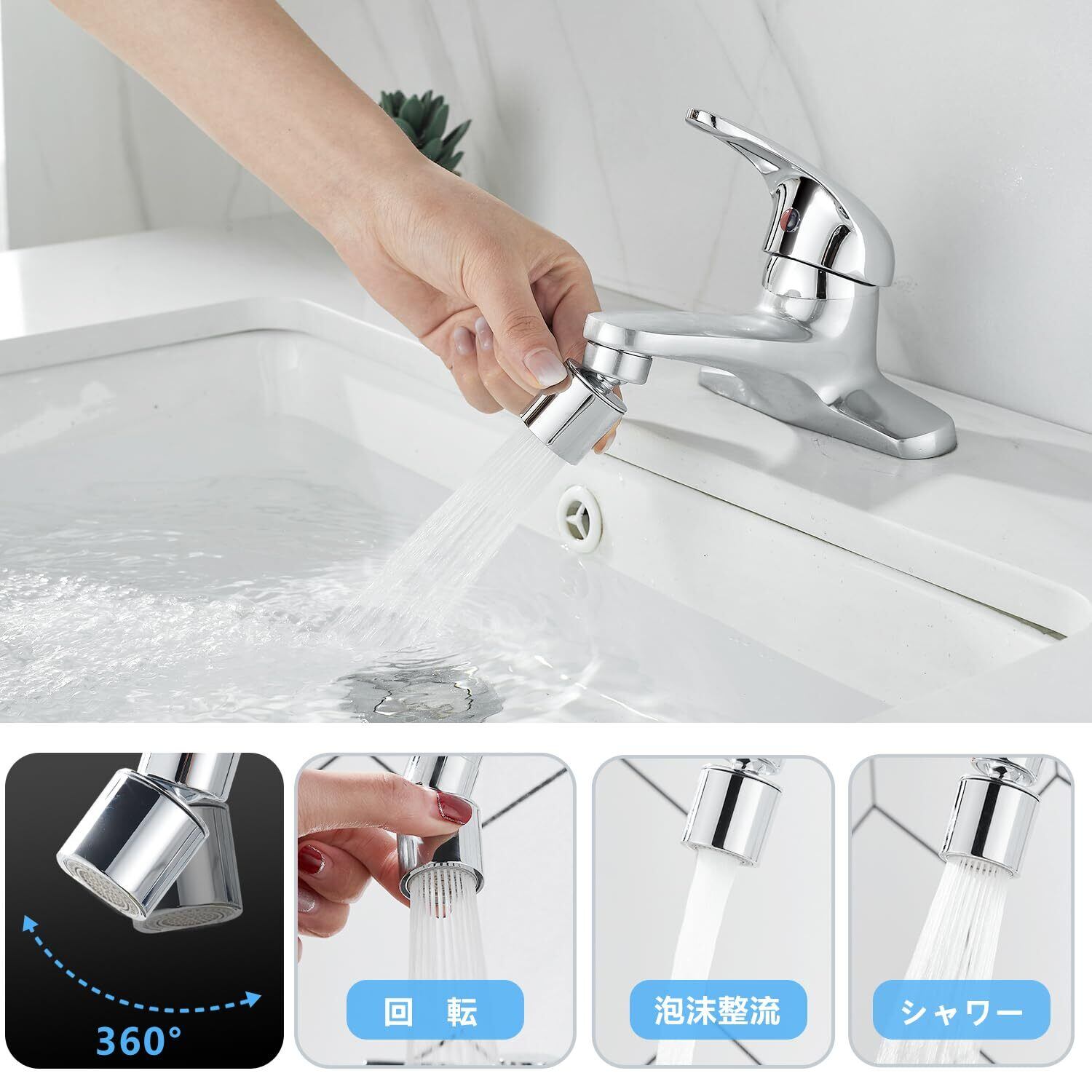 360°回転可能な注ぎ口: 吐水口が360°回転するので、水流が洗面ボウルの隅々まで届き、清潔で衛生的です