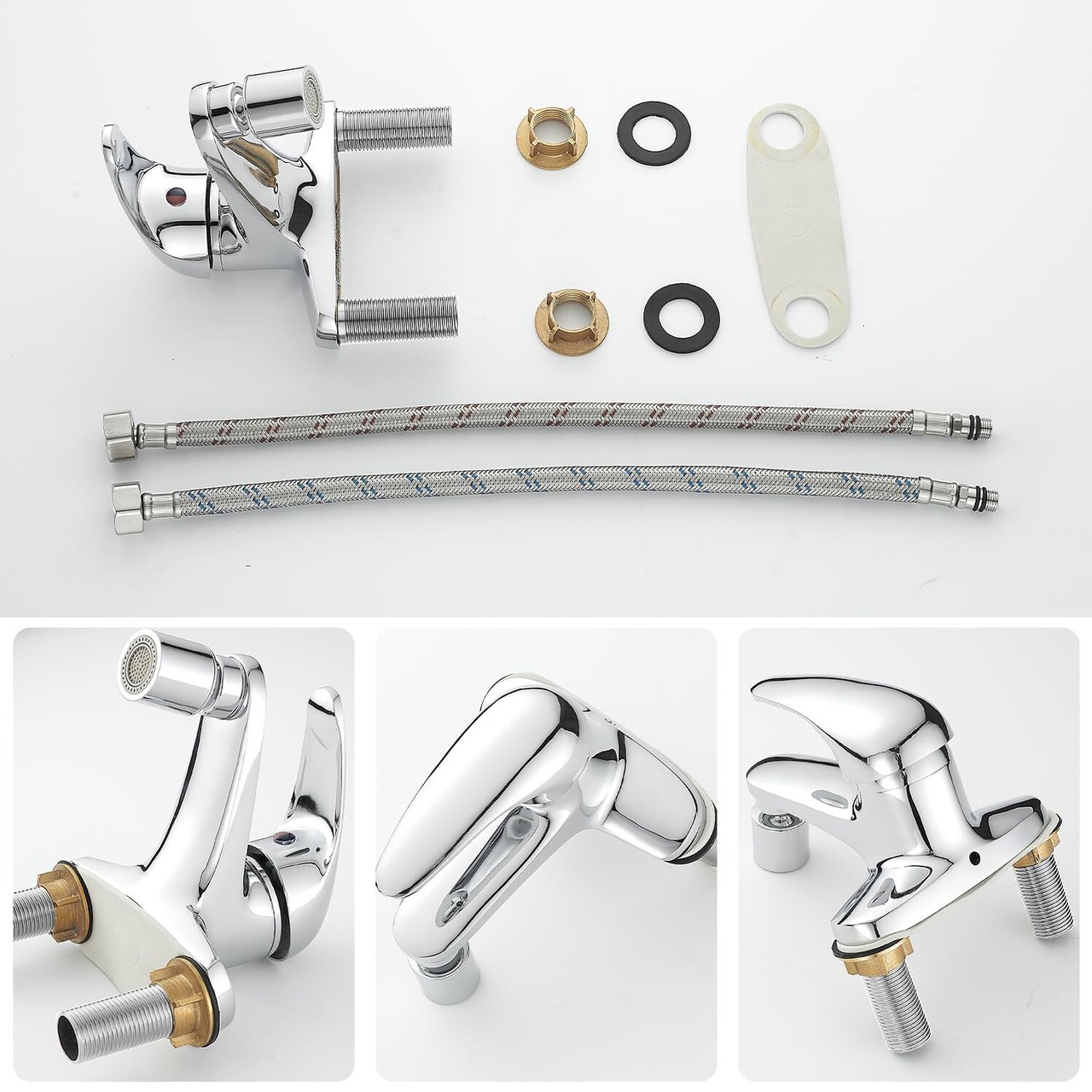 ツーホール式: この2穴シングルレバー混合栓は、2つの穴の間隔が10 cm前後の洗面台に適していますので、購入前に穴の間隔を確認してください。賃貸アパート、古い家、学校、病院などに適しており、非常にコストパフォーマンスが高いです