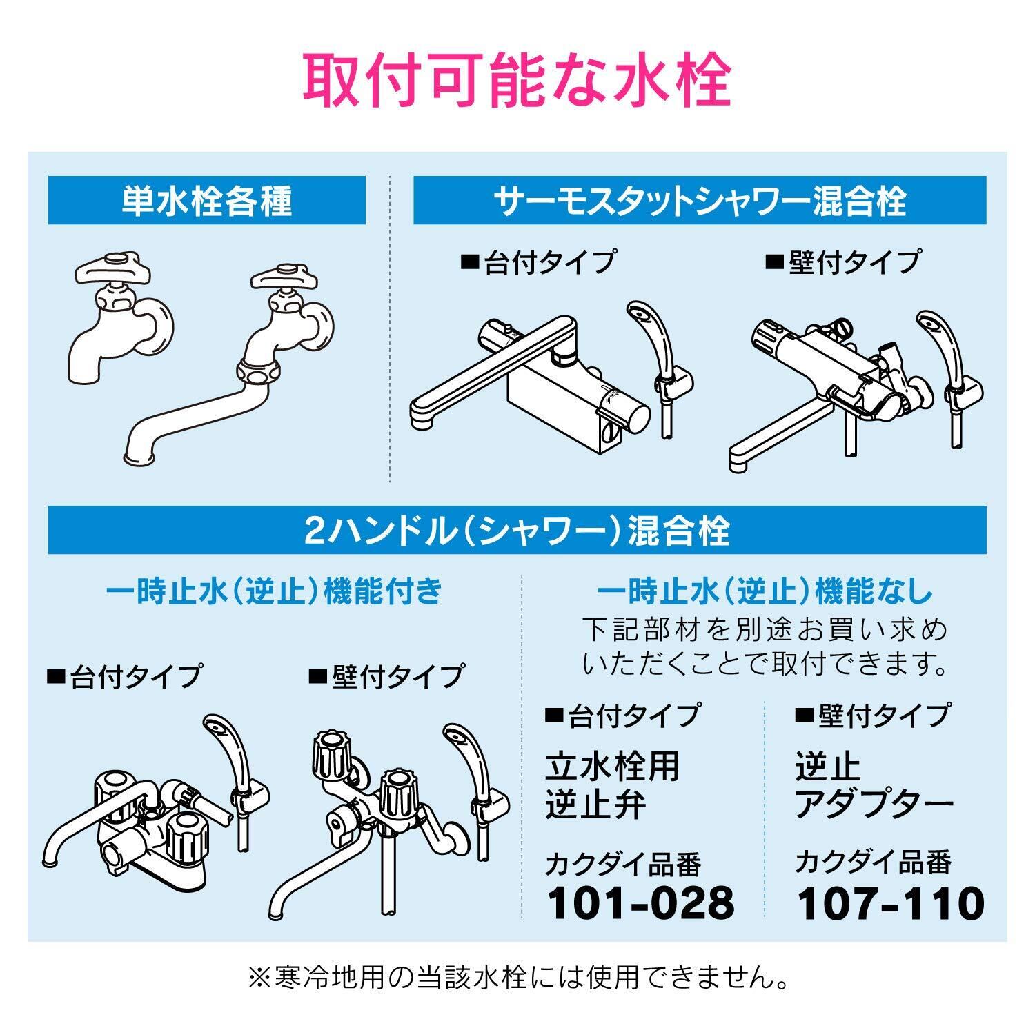 ※バランス釜、シングルレバー混合栓、元止式の湯沸器や温水器には使用できません。