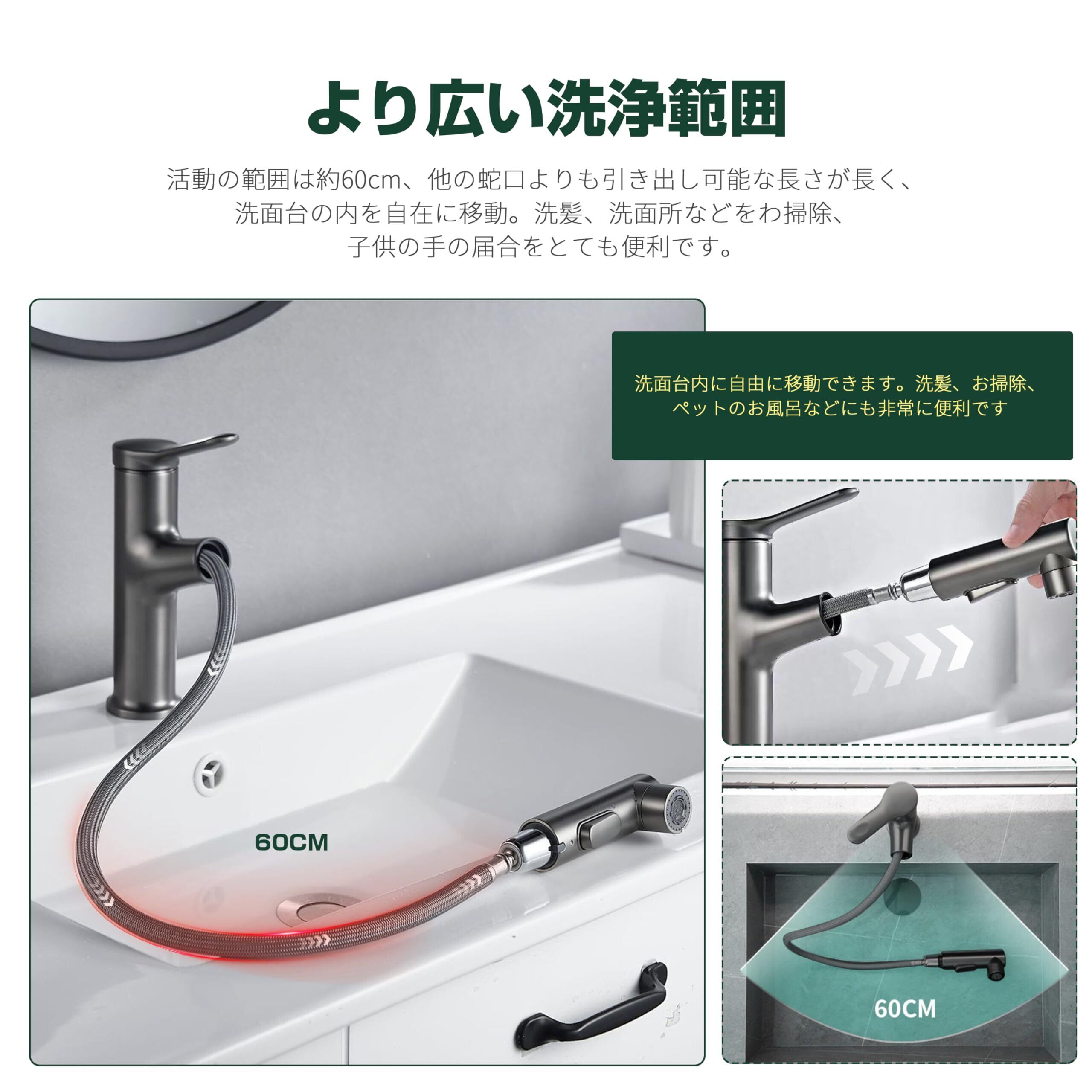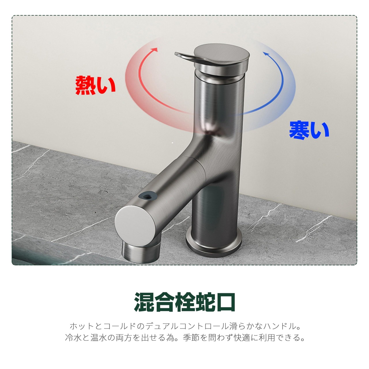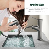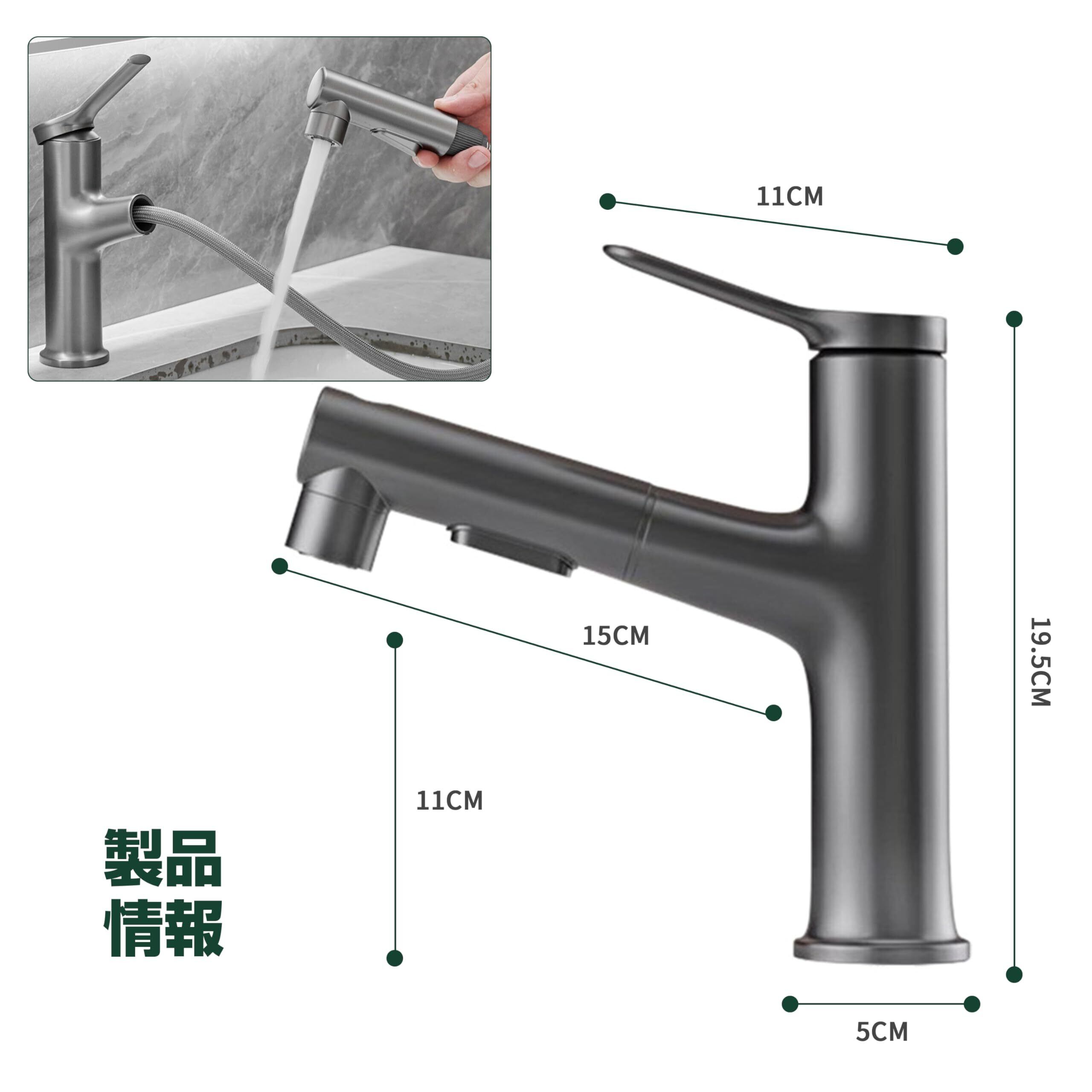 【新着商品】洗面蛇口 洗面水栓 ホース引出し式 吐水切替 シャワー 首振り 混合 蛇口 金具 交換 キッチン シャワーヘッド シングルレバー 洗面台用 洗面所も化粧台も 台所用品 洗面水栓