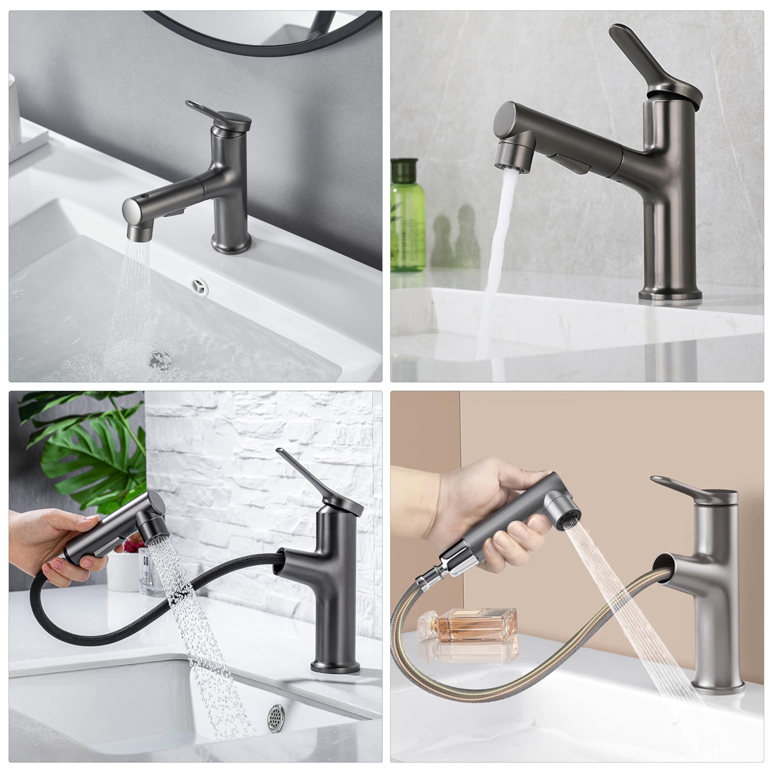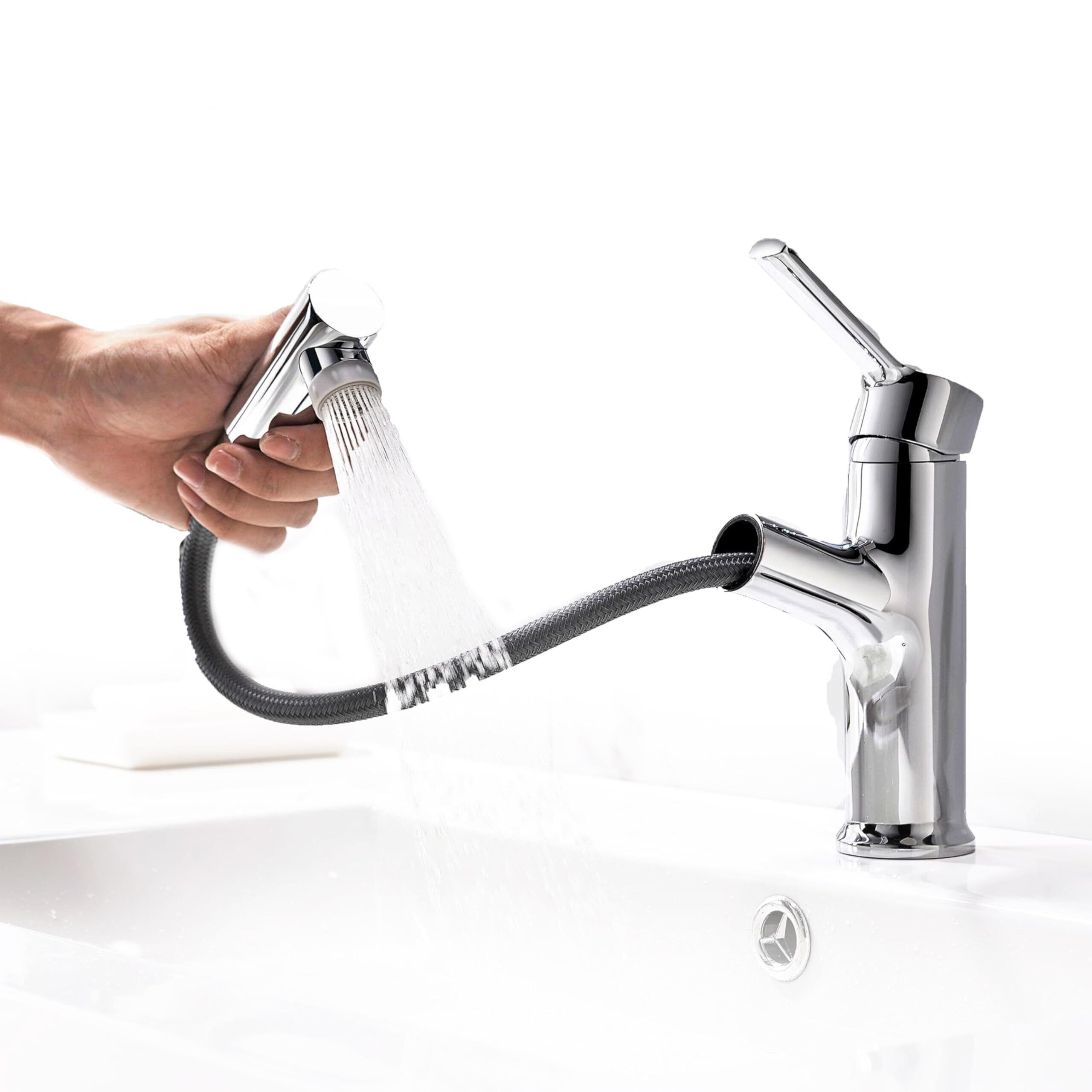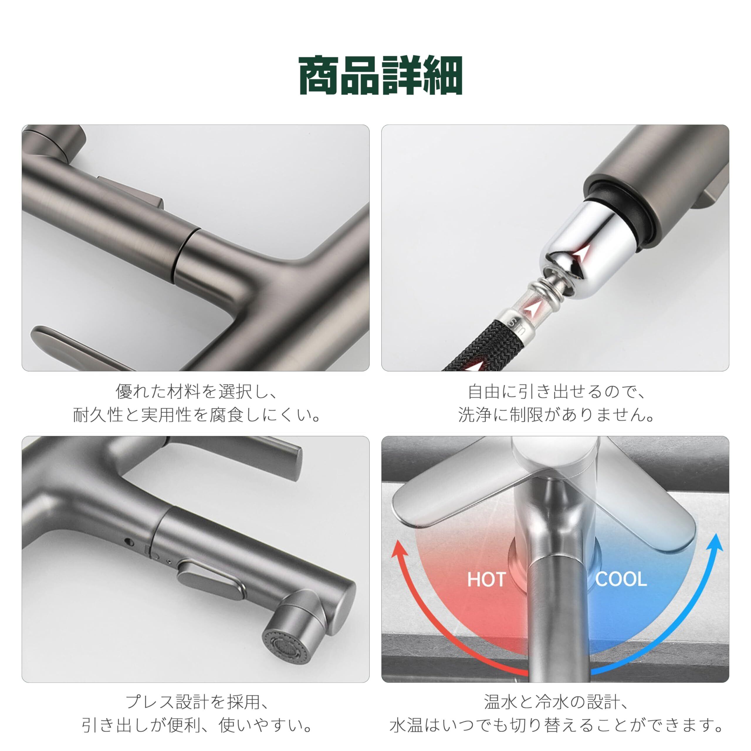 【新着商品】洗面蛇口 洗面水栓 ホース引出し式 吐水切替 シャワー 首振り 混合 蛇口 金具 交換 キッチン シャワーヘッド シングルレバー 洗面台用 洗面所も化粧台も 台所用品 洗面水栓