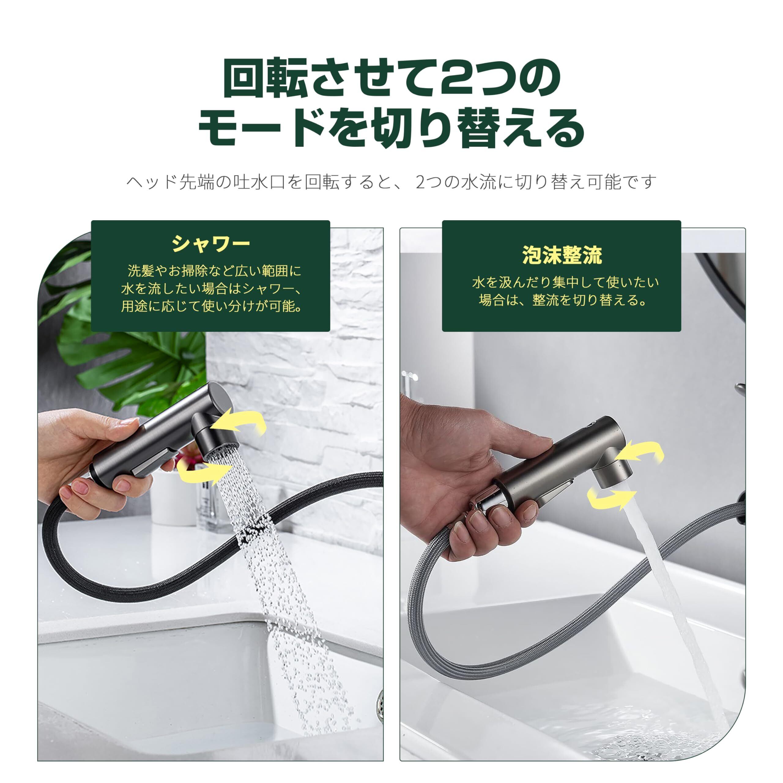 洗面蛇口 洗面水栓 ホース引出し式 吐水切替 シャワー 首振り 混合 蛇口 金具 交換 キッチン シャワーヘッド シングルレバー 洗面台用 洗面所も化粧台も 台所用品 洗面水栓