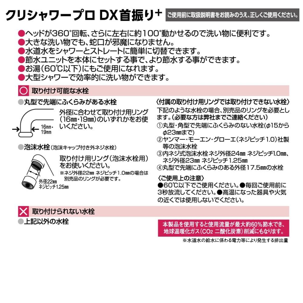 節水ユニットを使用すれば最大で約60%節水できます。
