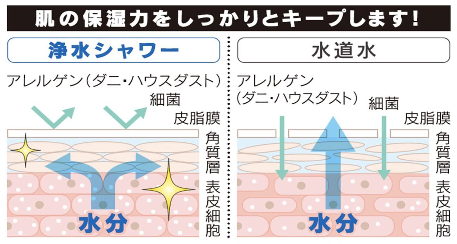 塩素除去能力:約8,000Lまでは水道水の塩素濃度1ppmを0.5ppm以下にろ過