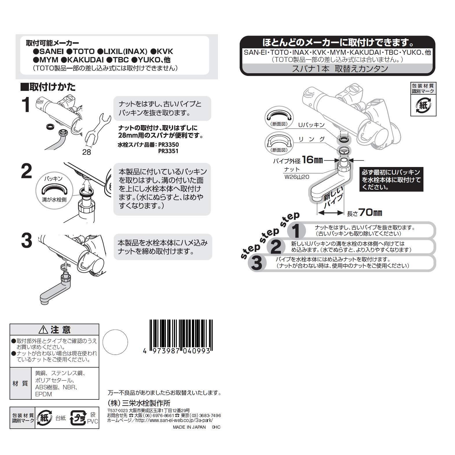 SANEI(サンエイ) 角吐水口 短いタイプ 直径16mm 長さ70mm PA1110-61X-16