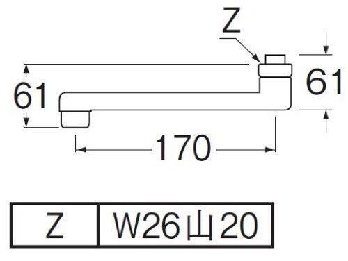 ネジ径:W26山20 パイプ外径:実寸16mm パイプの長さ:170mm